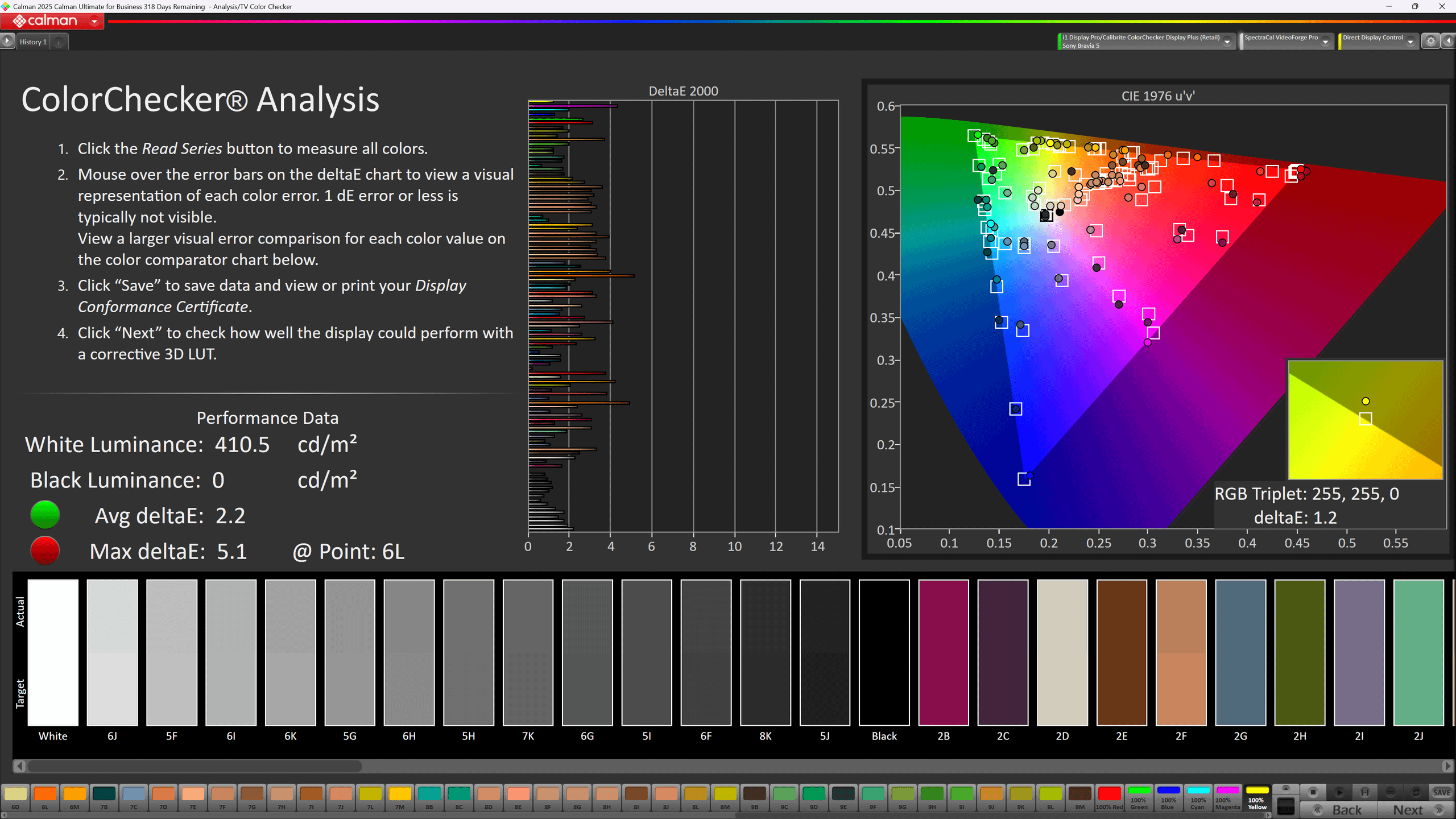 For this review I used an X-Rite i1 Pro spectrophotometer, Color Checker Display Plus colorimeter, Calman Ultimate, Portrait Displays Video Forge Pro 8K pattern generator, a Sony RX100 VII 1000fps camera, an SM208 Screen Luminance Meter, and a Sony Cinema Line FX3 mirrorless video camera. Plus years of display testing experience.