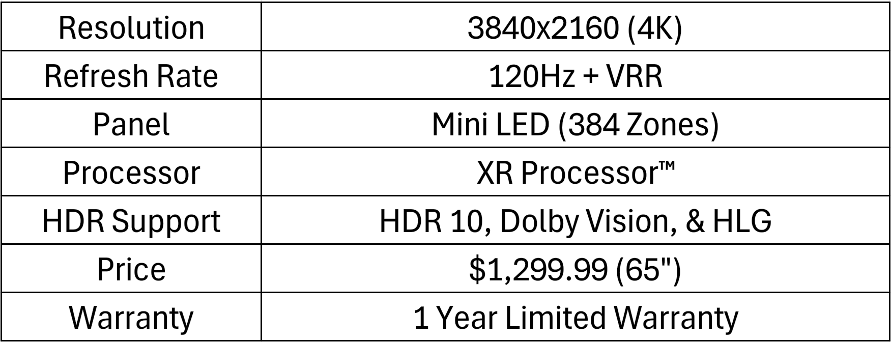 Sony’s firmware and menus remain polished and stable, with no lag or crashes. The XR processor improves low-bitrate and older SDR content, making it cleaner and more detailed. The retained input button on the remote is convenient, though the lack of backlight can be annoying in the dark.