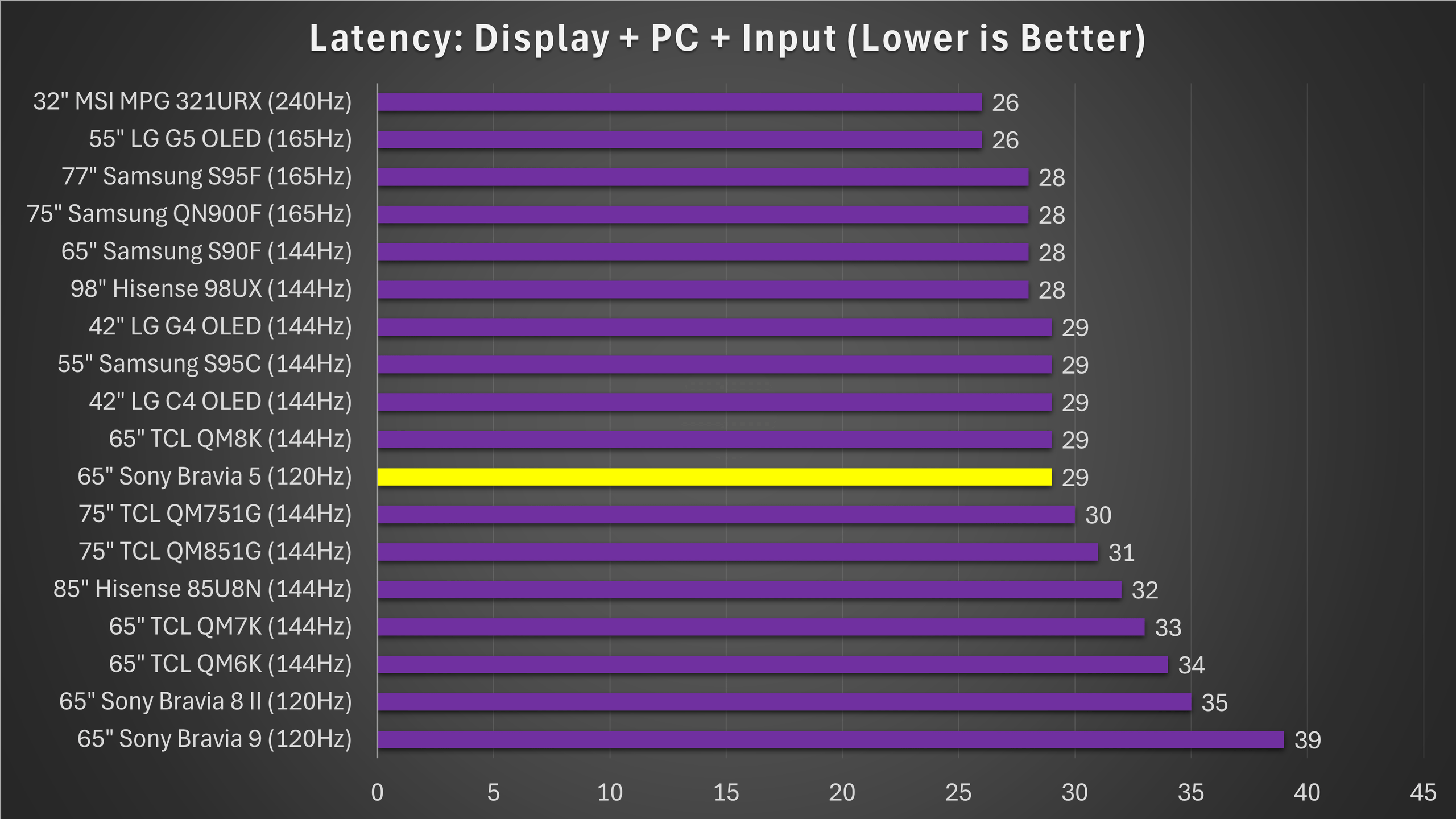 Gaming performance is one of the most interesting parts of this TV’s story. On paper and in measurements, the Bravia 5 surprised me with a low input latency of about 29 milliseconds at 120Hz in my tests making it very serviceable for console gaming.