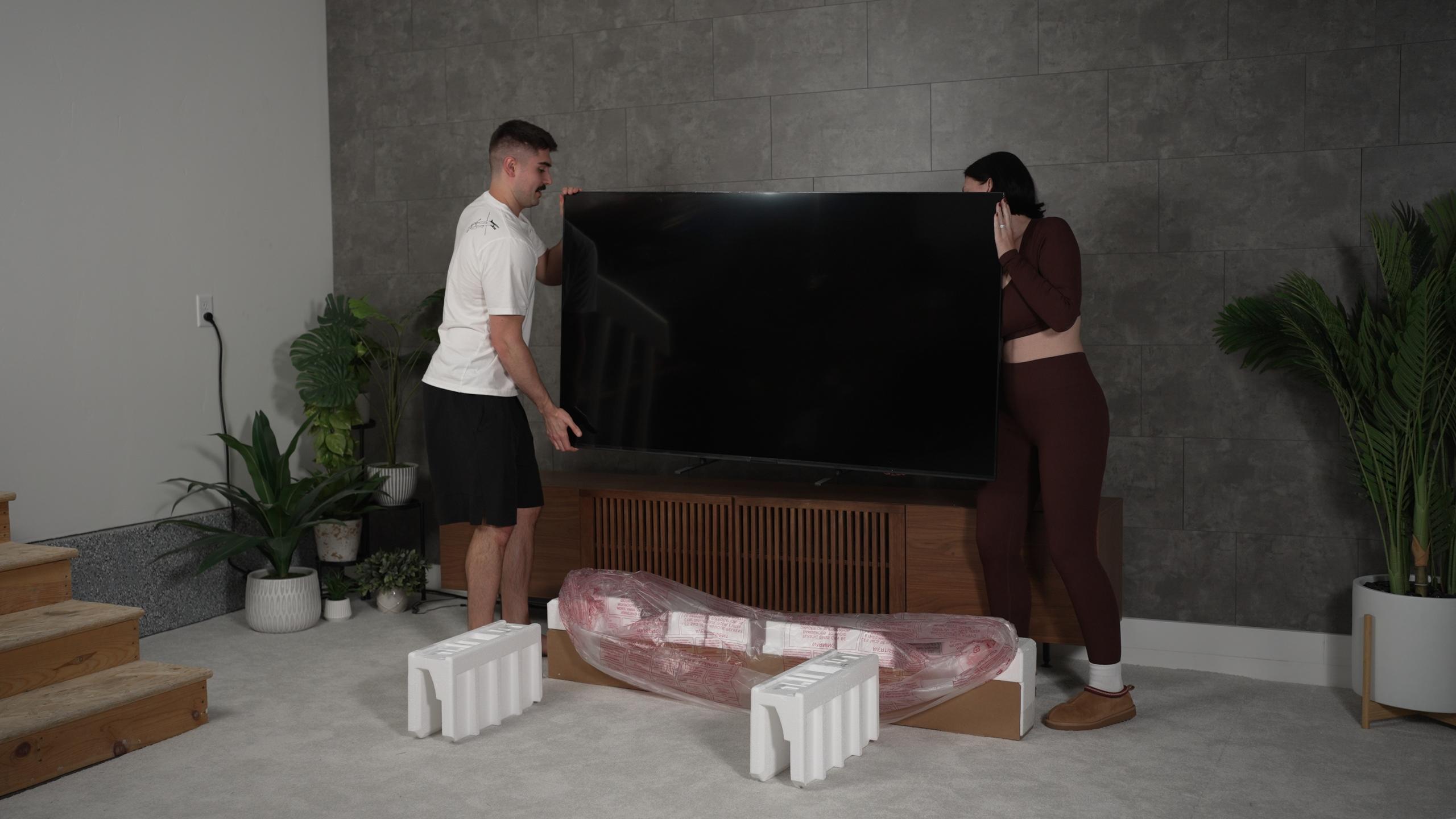 The unboxing experience for the Bravia 5 is the best i've ever experienced. taking the Bravia 5 out of the box is easy. You get the screen, a two-part stand which slides right into the ottom of the TV AMAZING!!!, the remote, and the usual manuals.