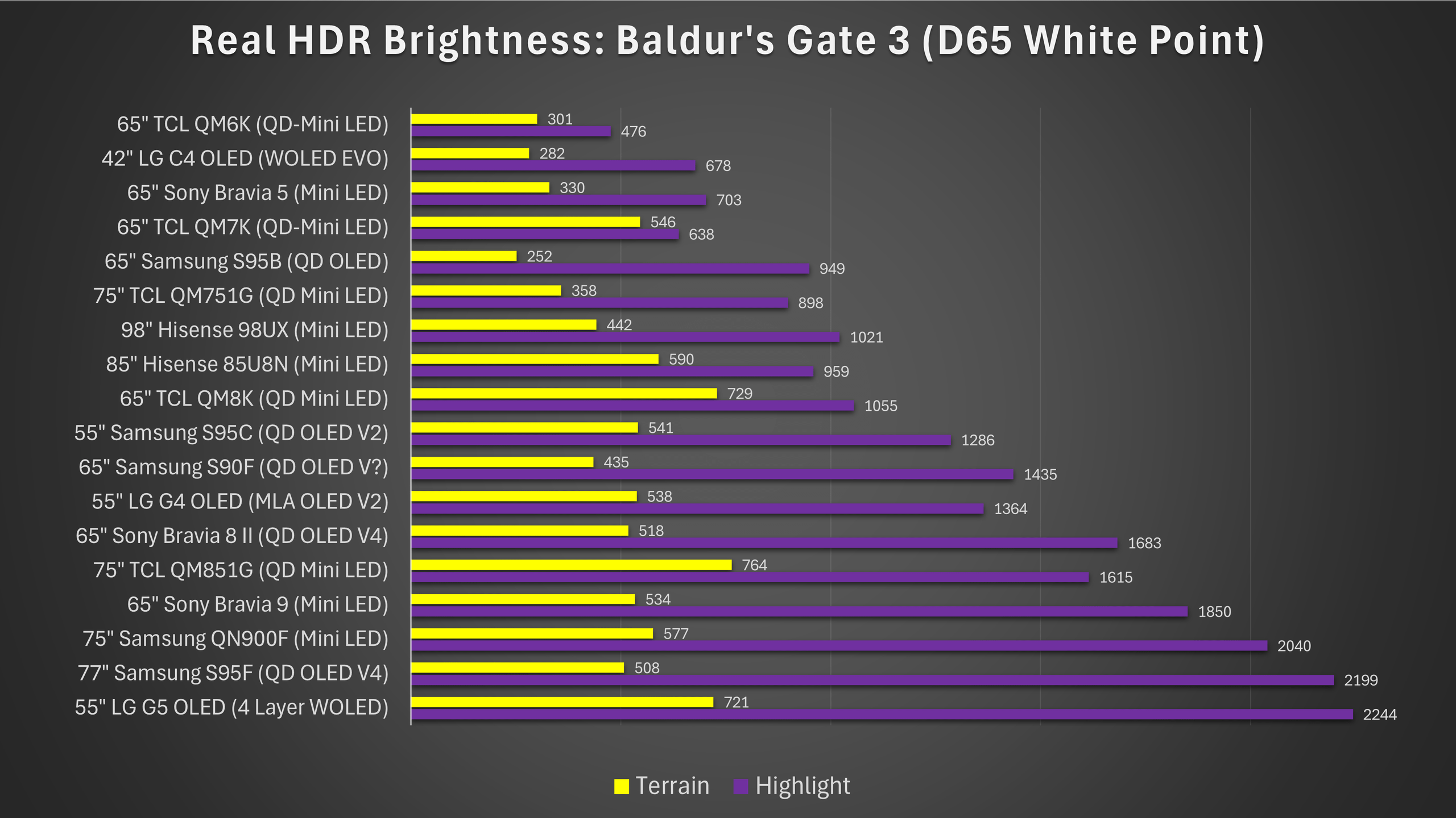 Now in real HDR content like the game Baldur’s Gate 3, we can see that this trend does actually continue. Bright highlights are handled well but motion and intensity do not reach the extremes you might see on more premium displays.