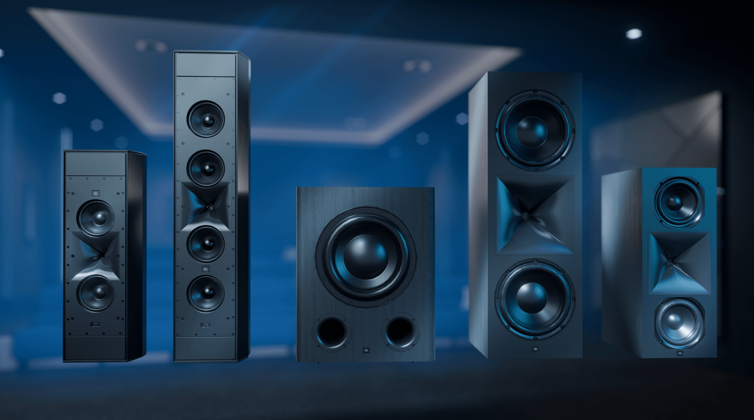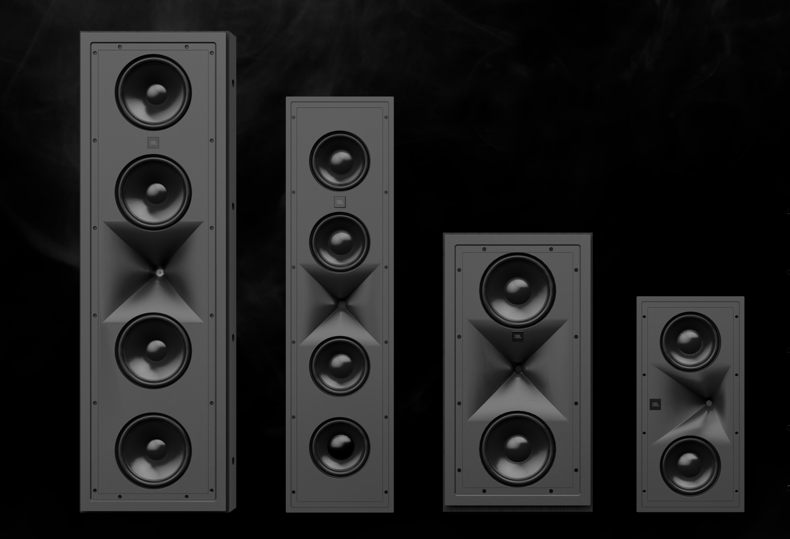 Let’s start with the loudspeakers. JBL Synthesis introduced nine new models across in-wall, on-wall, and in-room categories. All of them are timbre-matched, which basically means they’re designed to sound consistent when used together in a full surround or immersive system.