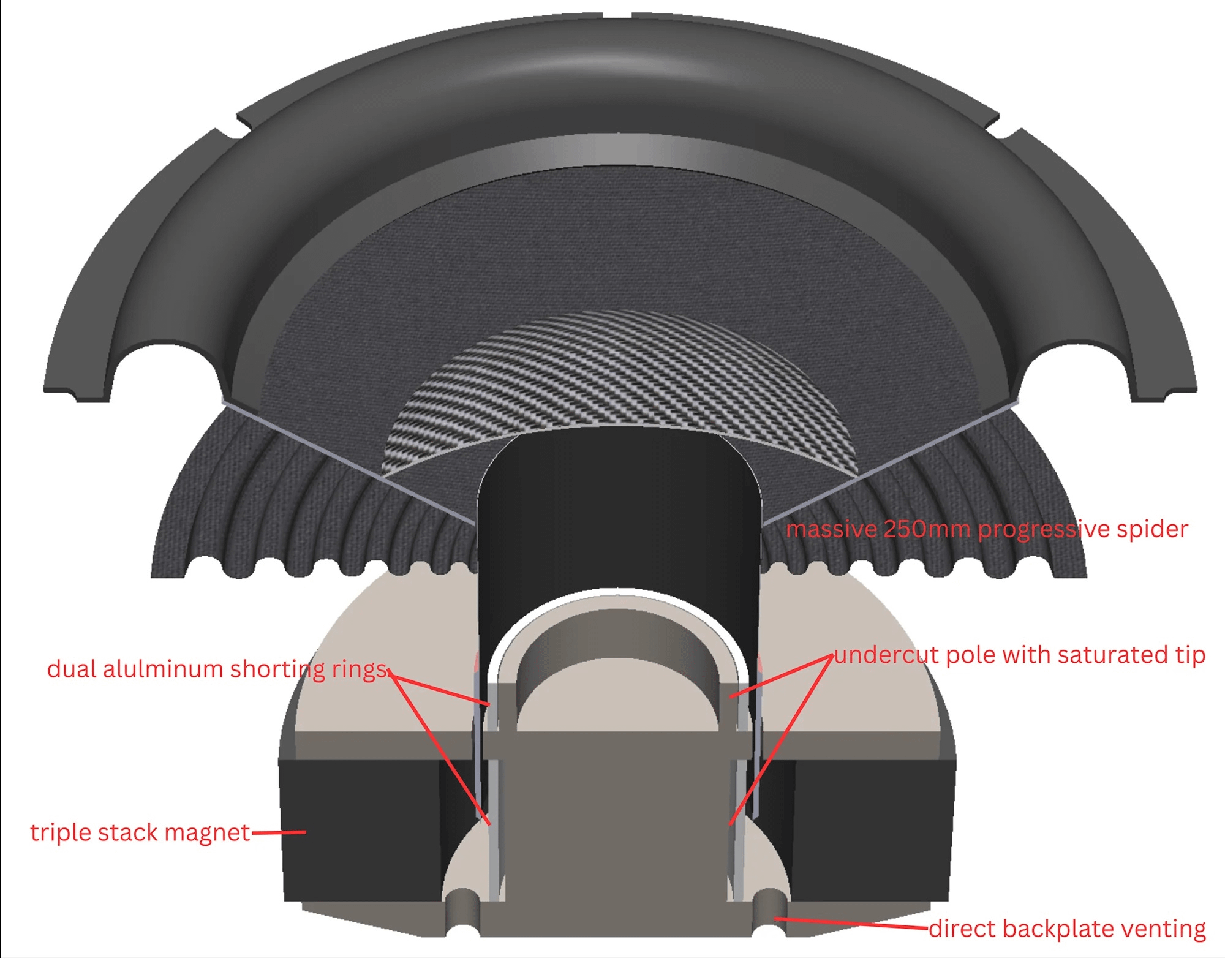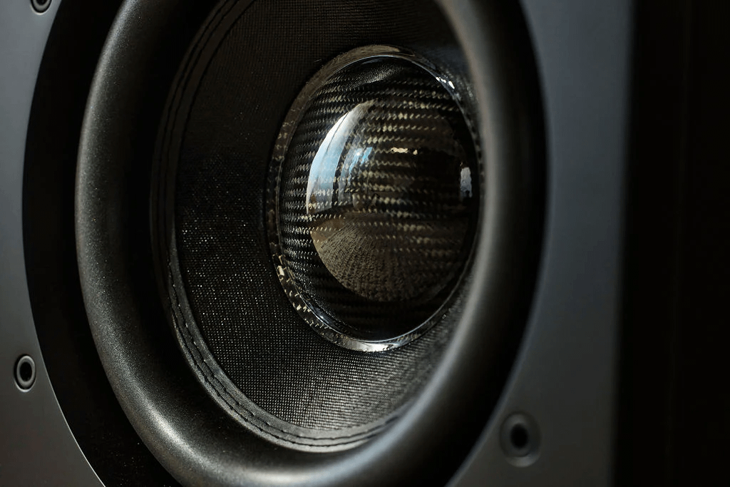 The cone itself is paper, paired with a carbon-fiber dust cap. That combination is chosen to keep the moving mass relatively low while maintaining stiffness and internal damping — in plain language, it’s designed to move a lot of air without flexing or ringing in ways that smear detail.