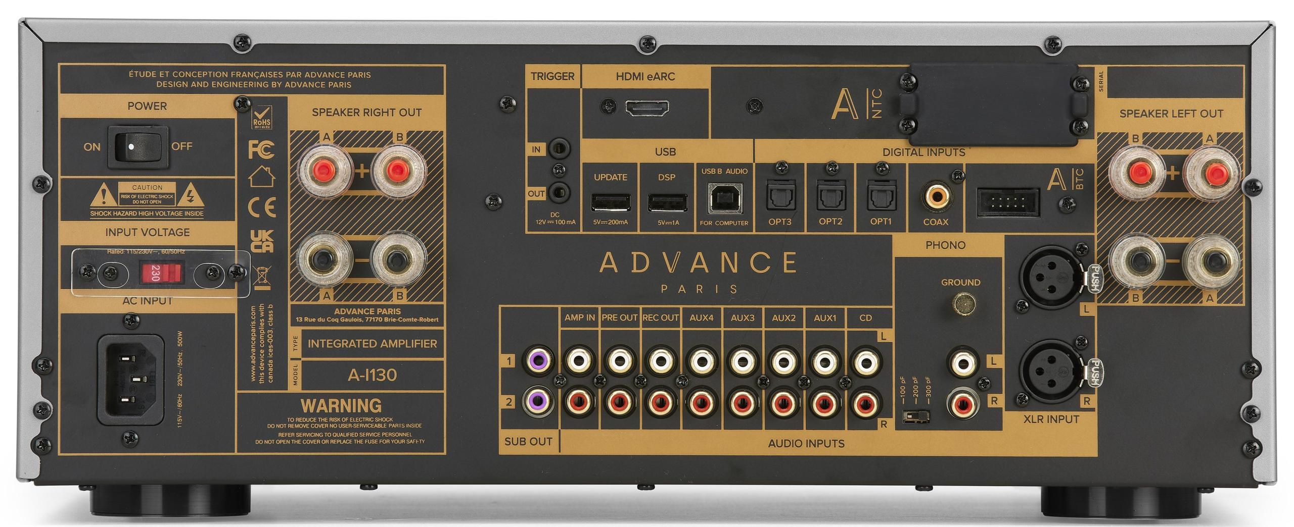 At the center of the NOVA range are two integrated amplifiers: the A-i130 and A-i190. As the names suggest, one is rated at 130 watts per channel and the other at 190 watts per channel. Both are designed to do more than simply power a pair of speakers. Advance Paris is positioning them as system hubs, combining amplification, DAC duties, DSP-based setup tools, and room-friendly bass management in a single chassis.