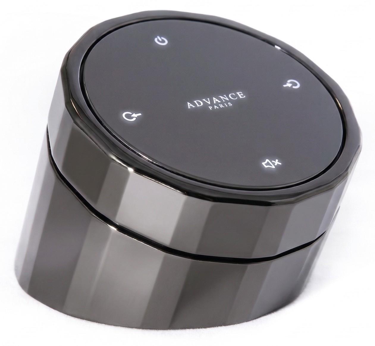 The oddest and probably most conversation-starting piece is the A-RTR rotary remote. Rather than a traditional handset, this is a tabletop metal controller with a rotating crown for volume, input selection, and power. It communicates wirelessly through the A-BTC module, so it is optional, but it also says a lot about who Advance Paris thinks this lineup is for: buyers who still like knobs, weight, and physical interaction instead of doing everything through an app.