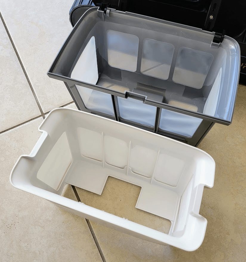 The filter mesh is rated to 150 microns, which is fine enough to catch pollen and dust, not just leaves and large debris. The basket holds 4 liters, enough that in most conditions you're looking at a few weeks between empties rather than daily maintenance. Pulling it out takes about 10 seconds via the side drawer, a rinse under a hose, and it slides back in.