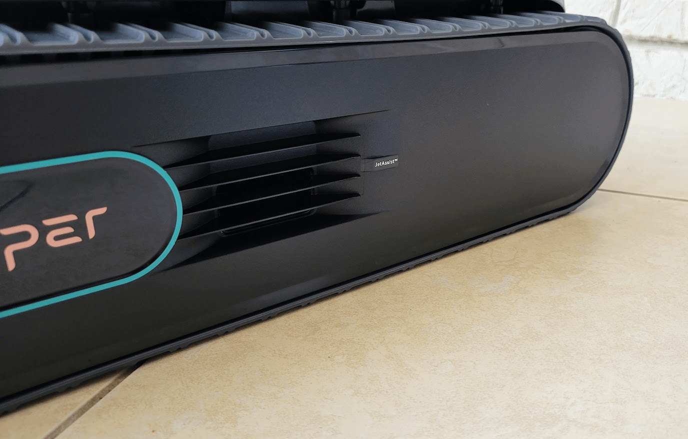 The JetAssist waterline system handles the scrubbing along the top edges of the pool. Side-mounted nozzles push water horizontally along the waterline to clear off the buildup that normally requires manual brushing, sunscreen residue, pollen, dust, oils. The V3 treats this as part of its regular cycle rather than something you have to go back and do separately.