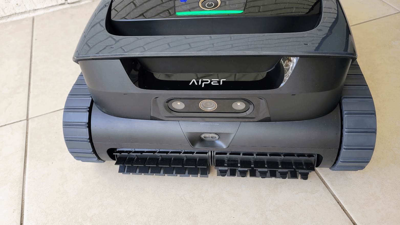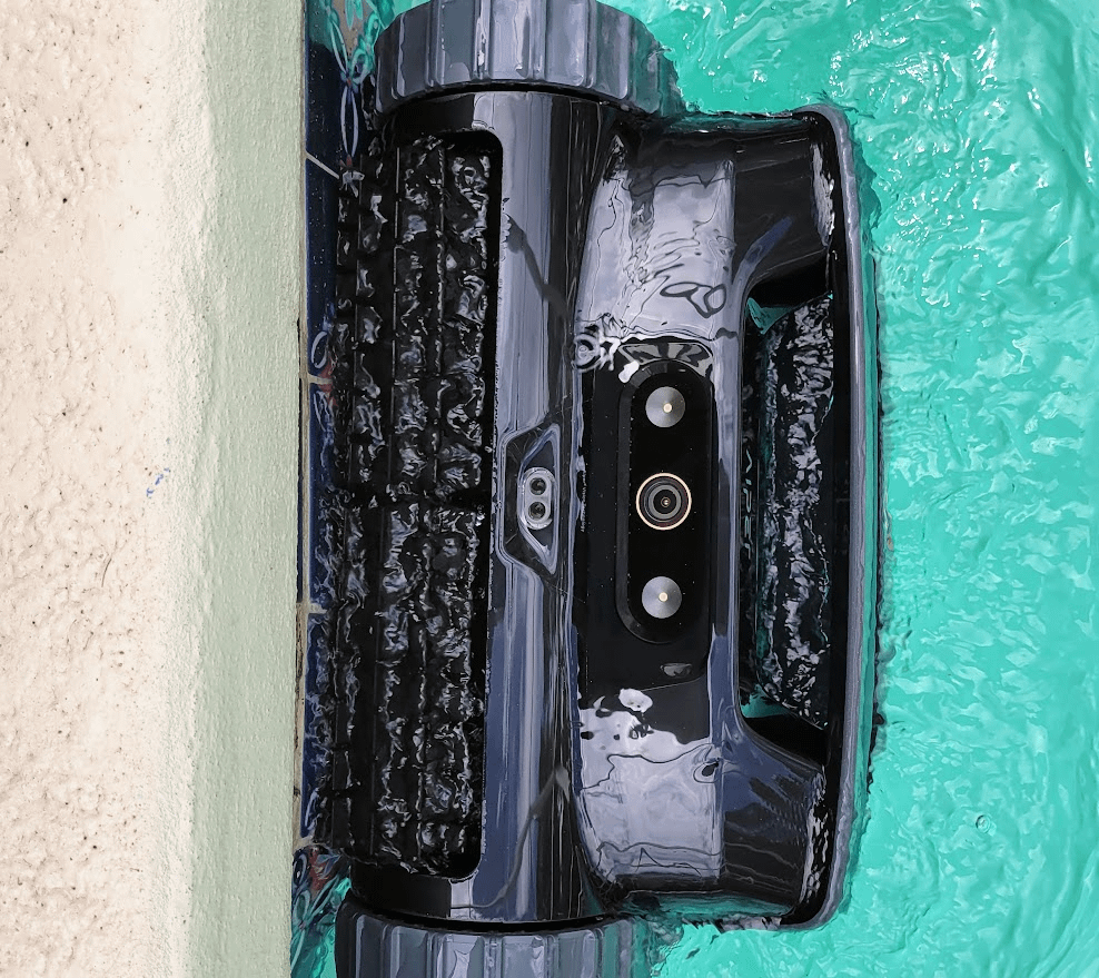 The most visually distinct feature is the front-facing camera housing, which is where the AI vision system lives. This is what allows the unit to actually see the pool, detecting debris, reading the space, and navigating with purpose rather than just following a pre-set pattern. The housing and overall design are undoubtedly premium, with polished plastic and beautiful accents.