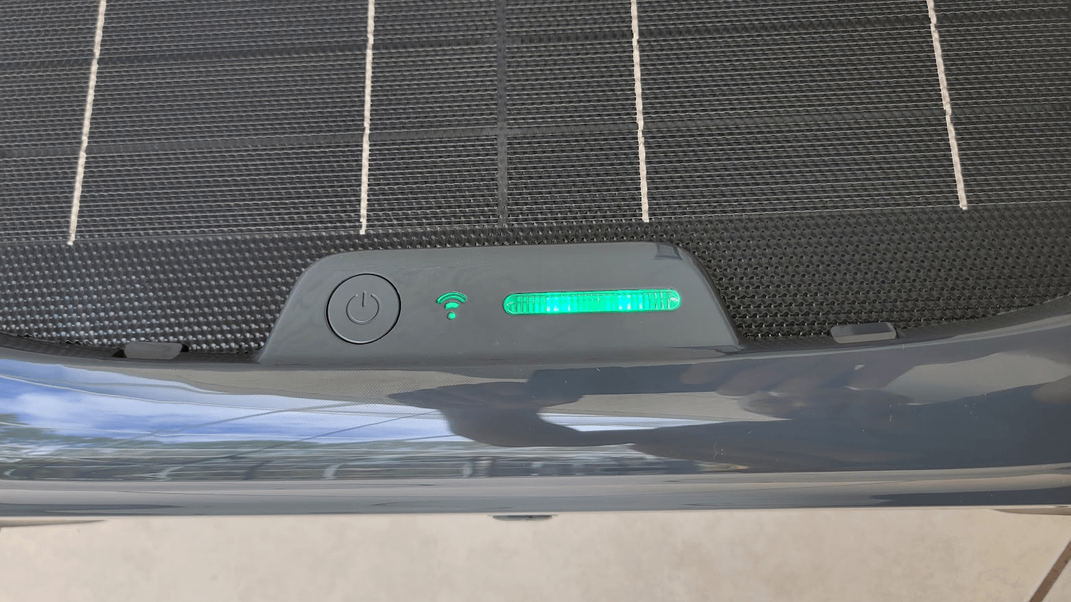 The battery holds 5,200 mAh and can run for up to 35 hours on a full charge from the included DC adapter, which takes four to six hours. But the more useful part is what happens when the battery gets low on its own while it's in the pool. The unit navigates toward the brightest area of the pool, parks there for around 15 minutes to top up from the solar panel on its back, and then resumes cleaning. In good sun, this creates a loop where the unit keeps itself going without any input from you. On bright days during my testing the battery held steady or actually climbed while the unit was running, and I’ve seen it realize it is motoring into the shade and turn around. Over the month I’ve tested it, I charged the unit once after a few cloudy days.