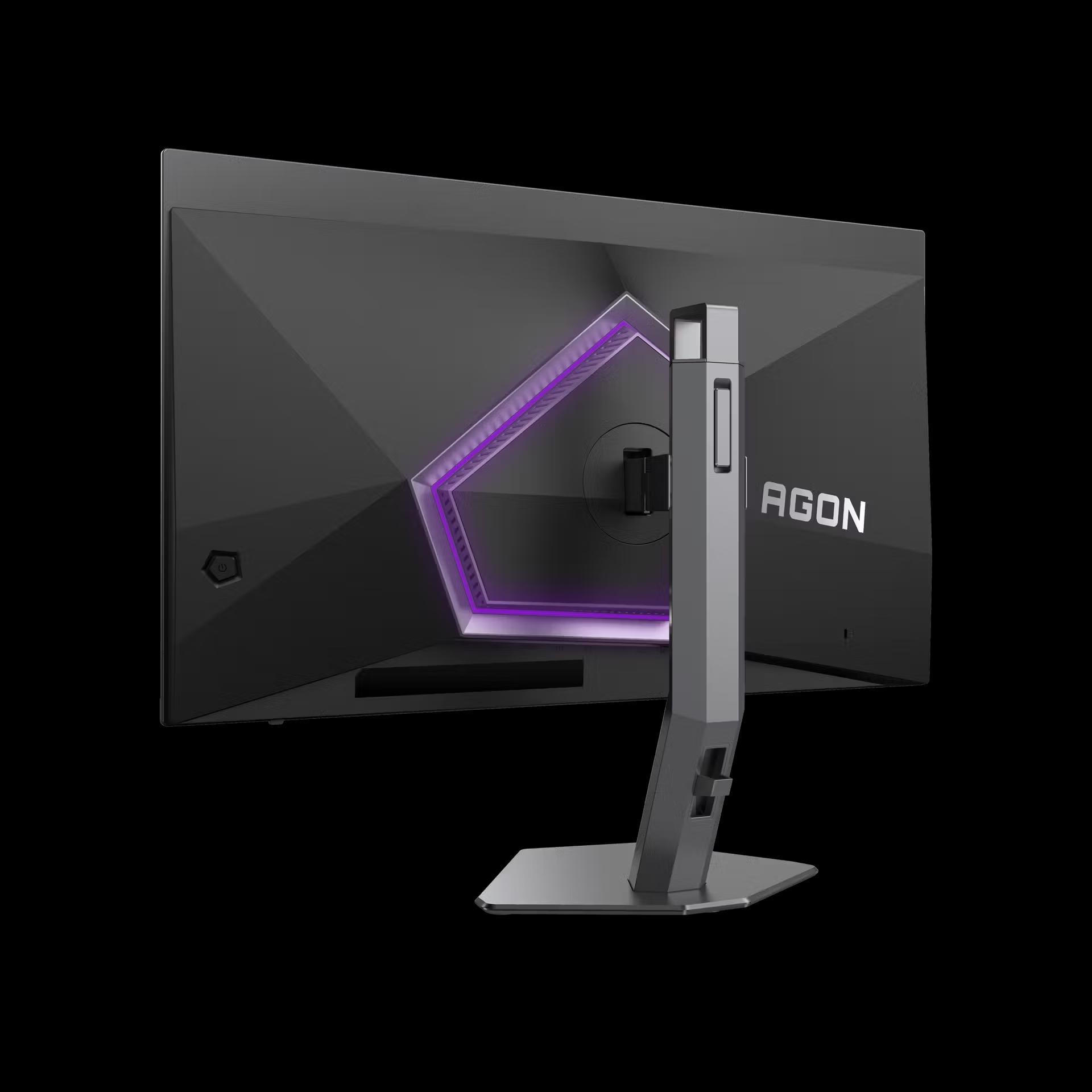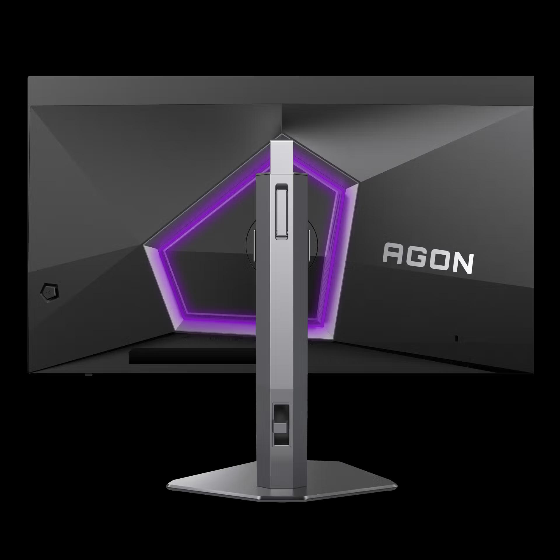 Both monitors follow AOC's established AGON PRO design language: dark matte finish, subtle RGB lighting along the back edge that diffuses against a wall rather than screaming at you, and a stand that actually does its job. Height adjustment, tilt, and swivel are all present — the kind of ergonomics that should be standard but still aren't on every monitor at this price. Neither display feels cheap when you're adjusting it.