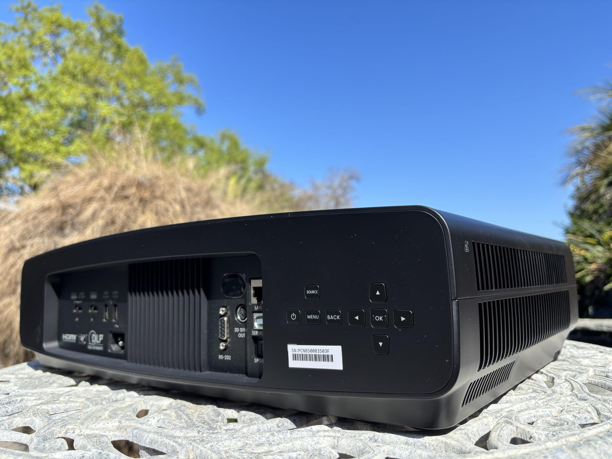 The laser light engine is rated at 2,600 lumens, which is enough to drive a large screen in a properly light-controlled environment. In a dedicated theater with blackout conditions, you'll have no issues at screen sizes up to 150 inches and potentially beyond, depending on your screen gain. If you're trying to use this in a room with ambient light, you'll want to manage expectations — this isn't designed for that use case, and no projector at this size and quality level really is.