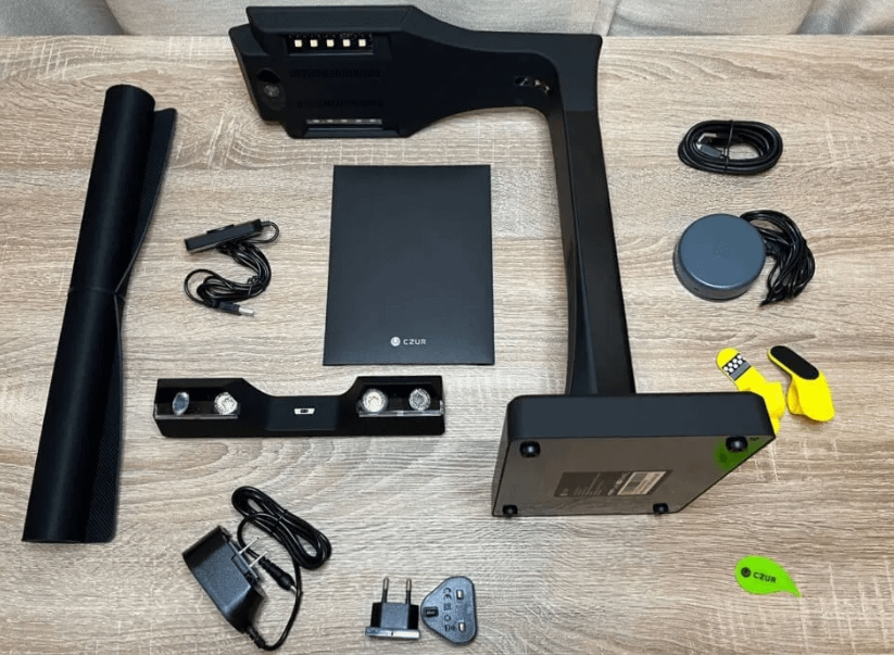 The CZUR ET Max scanner feels like a premium device from the moment you open the box. Besides the main unit, power adapter, soft document mat, and USB cable, it also comes with a hand button, foot pedal, and specialized finger cots for pressing down book pages—accessories that really expand its versatility and make it suitable for different scanning needs.