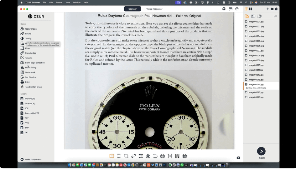 Users can enjoy batch rotation, professional cropping, handwriting removal, and fine adjustments to hue and contrast, making it easy to achieve polished, professional results every time.
