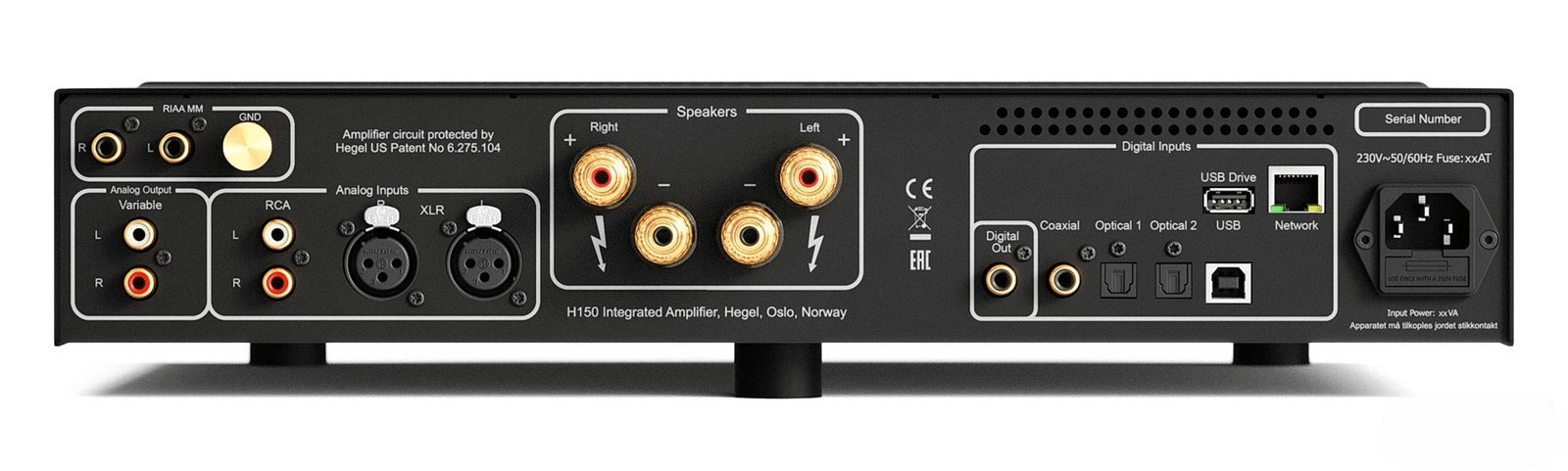 Hegel hasn’t skimped on inputs. On the digital side, you get two optical inputs (one is optimized for TV), a coaxial input, USB-B for your computer, and Ethernet for streaming. There’s also a coaxial digital output if you want to use the H150 as a digital hub for another system.
