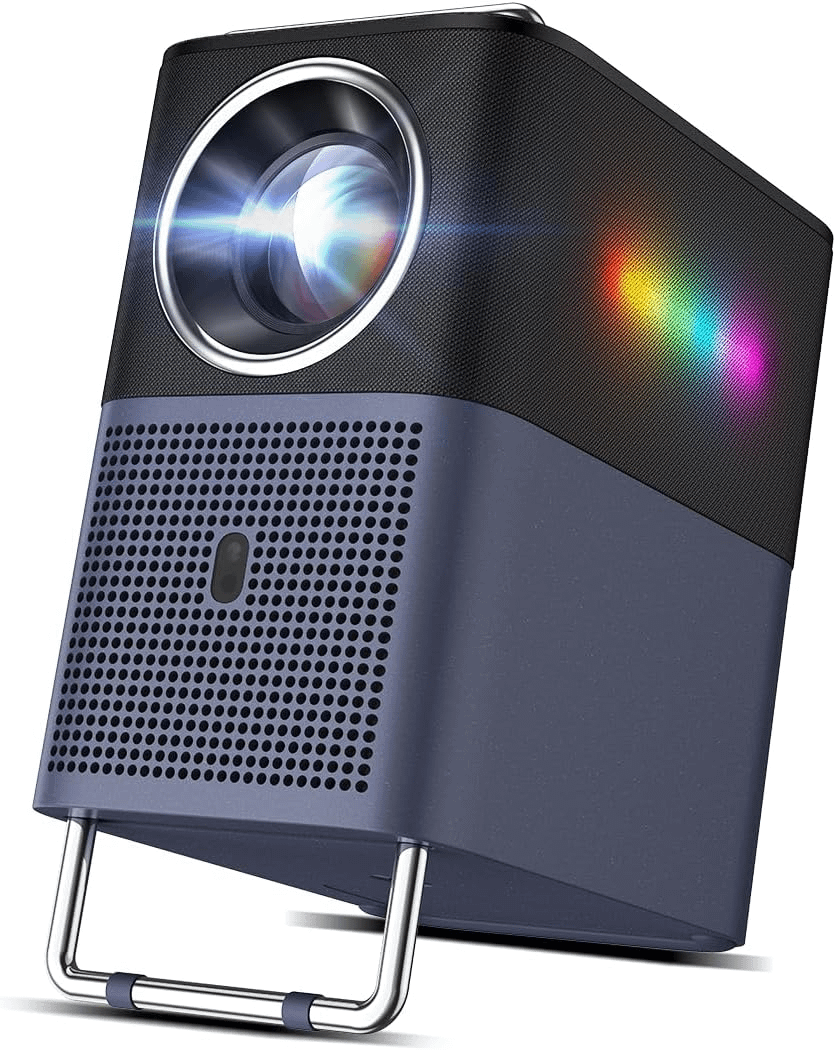 Finally, the Aurzen BOOM Air is the ultra-budget portable pick that still manages to check some surprisingly nice boxes. It’s a 1080p projector with a 300 ANSI lumen LED light engine, built-in Google TV, and a 10W speaker system with Dolby Audio. It’s USB-C powered (you’ll want a 65W+ power bank if you’re going fully mobile), and the little tilting gimbal stand makes it easy to aim at a wall or screen without wrestling with stacks of books.