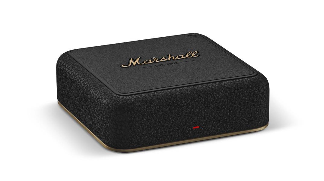 Physically, the Heddon is small, just under five inches wide, and styled to match the rest of Marshall’s lineup, complete with a black textured finish and gold logo. There’s no screen or cluttered interface. It’s meant to disappear into your setup and be controlled entirely from the Marshall app.