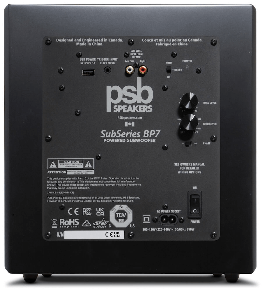 Unlike ported subs (which use vents to boost low-end), the sealed design here keeps things more consistent. There’s no port noise or chuffing, and it tends to behave more predictably no matter where you place it. PSB says the BP7 reaches down to 28 Hz (±3 dB), which should be enough to satisfy most home theater setups.