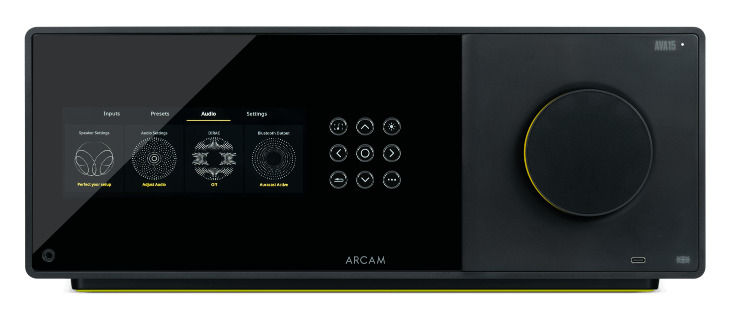 Each piece keeps the sleek Radia design, matte black finish, yellow highlights, and a full-color 6.5-inch display. And beyond the styling, Arcam is leaning into flexibility and control, with a strong focus on compatibility with immersive audio formats, room correction, and streaming.