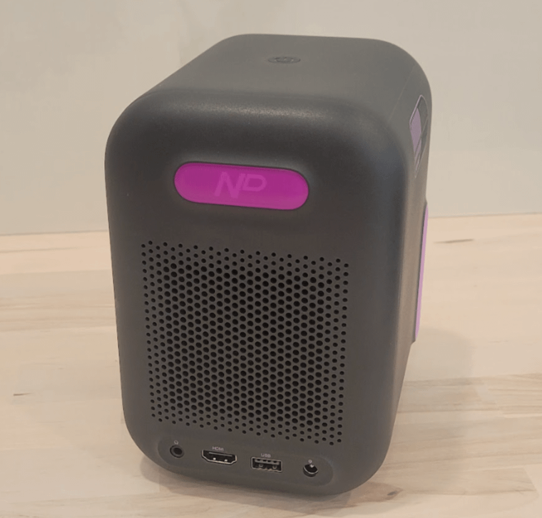 At just 2.7 lbs, the NothingProjector NP One strikes an appealing balance between substantial build quality and genuine portability. The compact dimensions—6.7" height, 5.5" depth, and 4.7" width—make it small enough to slip into a backpack or tote bag without thinking twice. The plastic construction features rounded corners that give it a modern, approachable aesthetic that wouldn't look out of place in either a bedroom or boardroom setting.