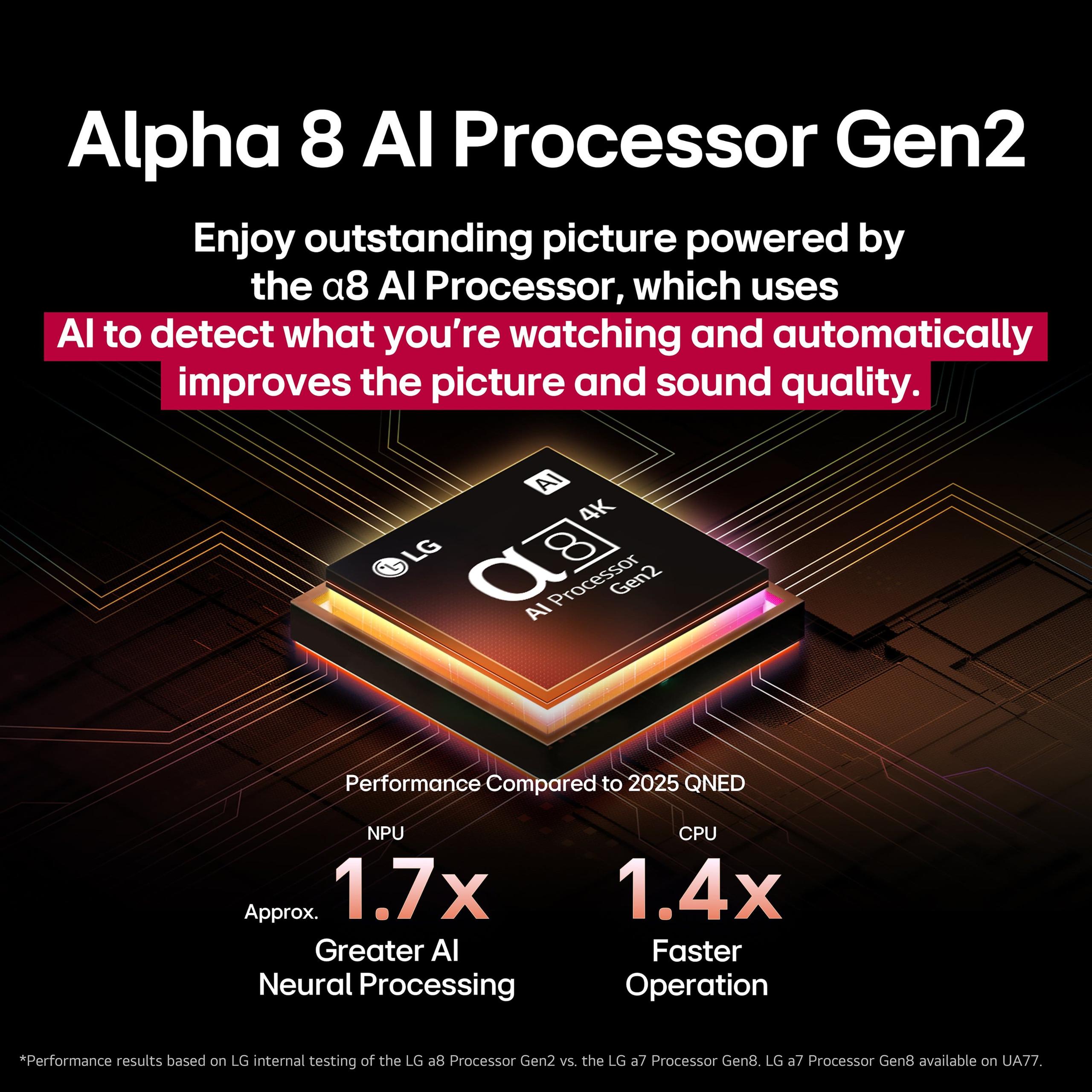 Perhaps the most significant upgrade in this year's model is the α8 Gen 2 AI processor, which LG says delivers 70% better AI performance than previous generations. This isn't just marketing speak – the processor actively analyzes content frame by frame, making real-time adjustments to optimize picture quality.