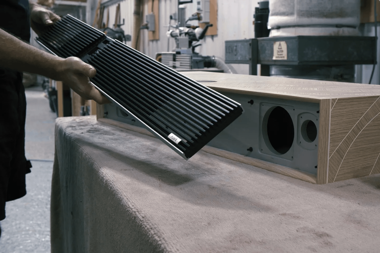 What makes the MiE version stand out is how it’s built. Ruark worked with Storm Furniture, a UK-based woodworking company that usually creates custom interiors. Storm is also part of the Guild of Master Craftsmen, and for this project, they brought a very furniture-first approach.