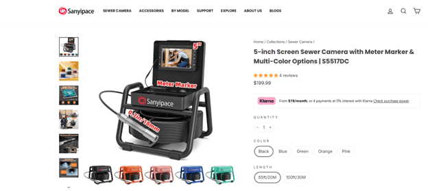 If you want to see the available colors and the official product listing, use the SANYIPACE S5517DC DIY sewer camera official product page and color options.