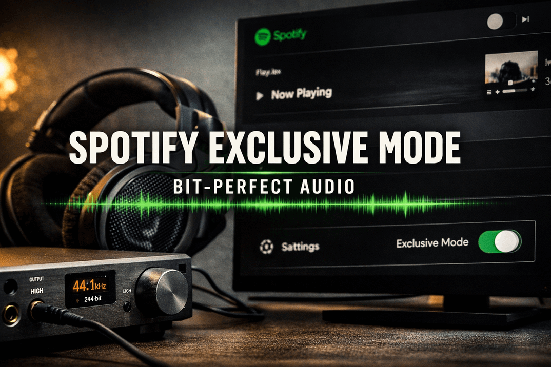 Exclusive Mode cuts that layer out. When it is turned on, Spotify takes direct control of the selected audio device and sends the stream without the usual system-level processing. That is what people mean when they talk about “bit-perfect” playback.
