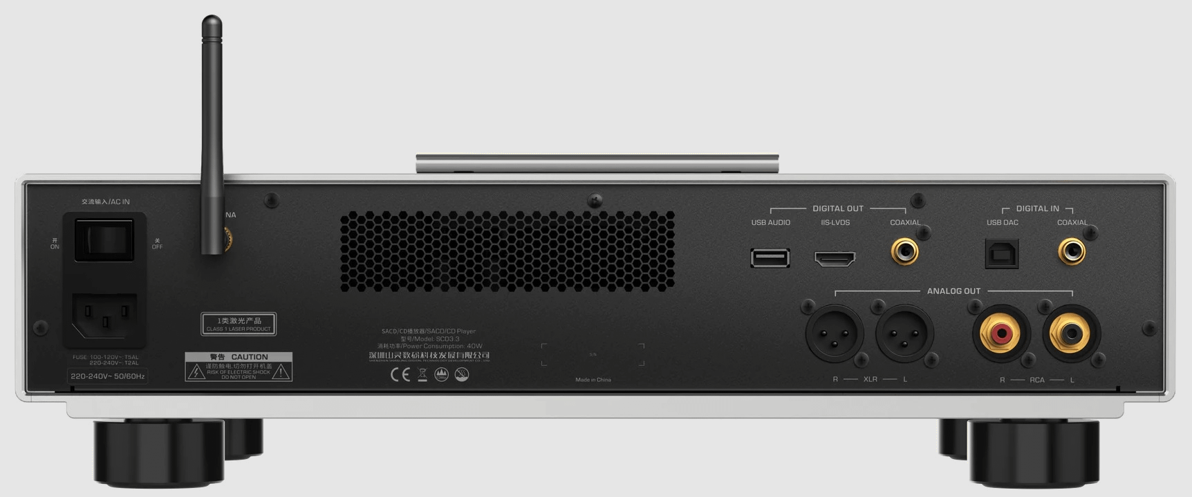 Even though it looks like a classic disc player, the SCD3.3 is actually a pretty modern digital hub. It includes an XMOS XU316 USB receiver that handles up to 32-bit/768kHz PCM and DSD512. There’s a USB-A port for thumb drives and external storage, a USB-B port for PC or Mac connection, and coaxial S/PDIF input for other digital gear.