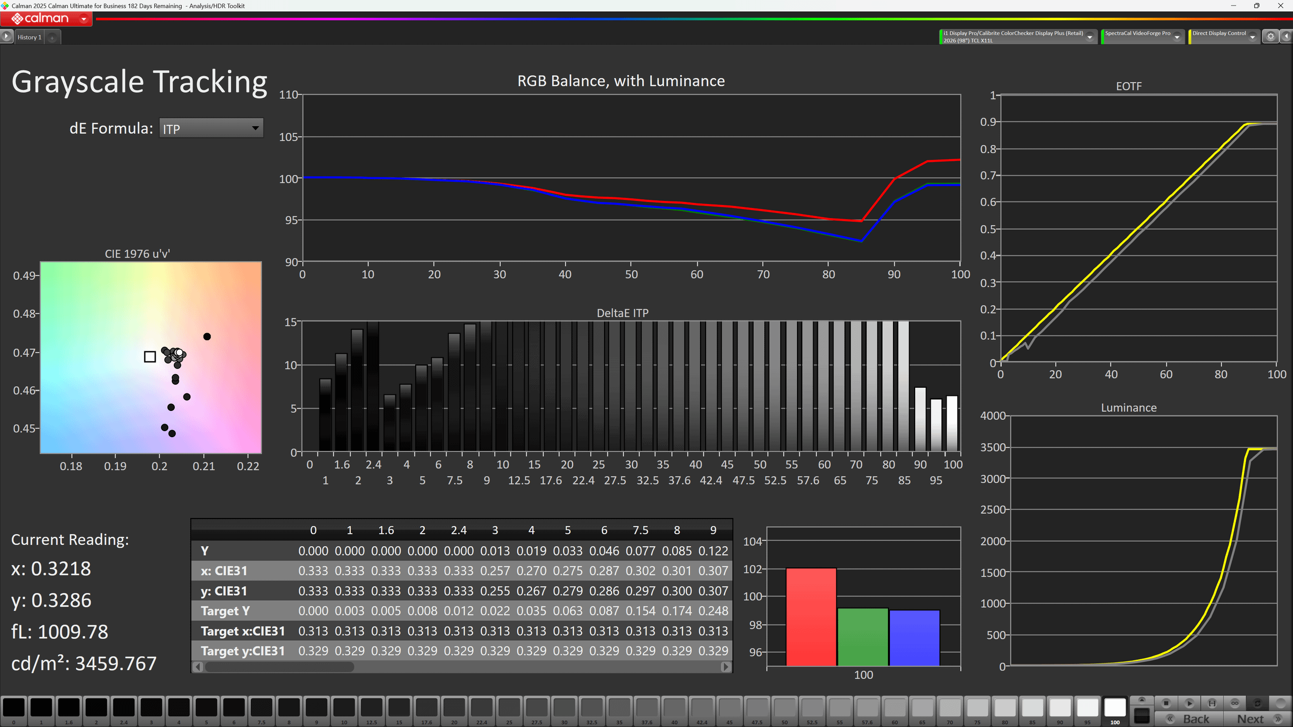 For this review I used an X-Rite i1 Pro spectrophotometer, Color Checker Display Plus colorimeter, Calman Ultimate, Portrait Displays Video Forge Pro 8K pattern generator, a Sony RX100 VII 1000fps camera, an SM208 Screen Luminance Meter, and a Sony Cinema Line FX3 mirrorless video camera. Plus years of display testing experience.