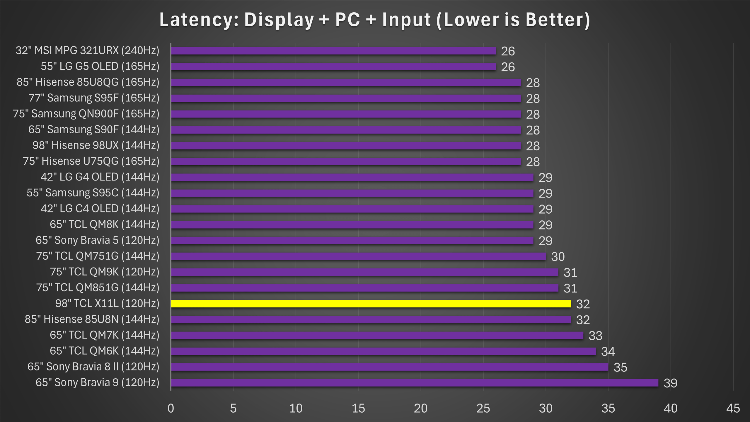 Input latency measured 32 milliseconds—acceptable but far from class-leading.