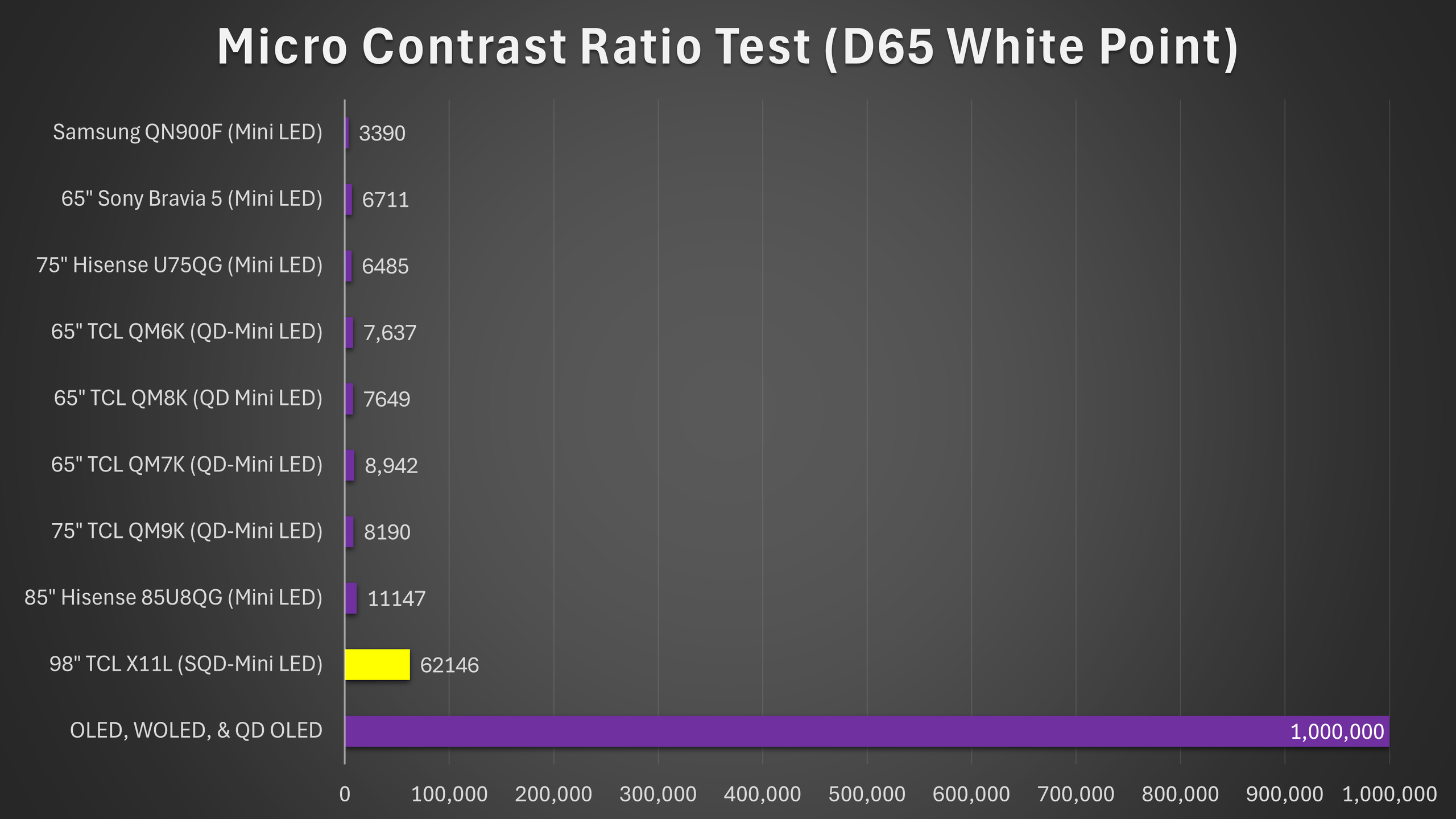 Absolutely no other Mini LED can touch the X11L in contrast. It's a crushing victory.