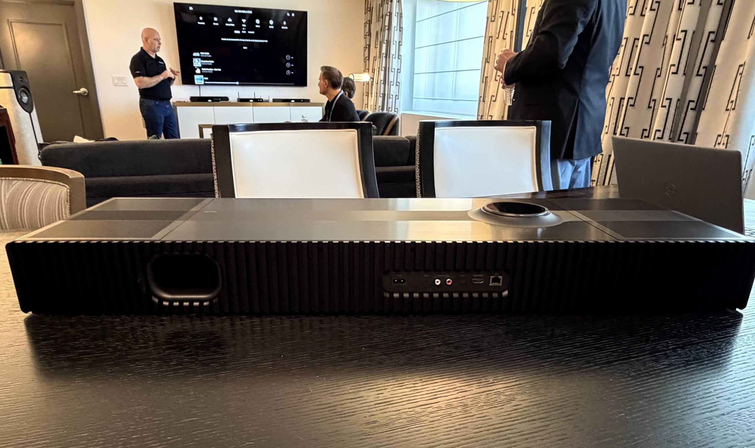 Built from a sculpted slab of black aluminum, the Hekla doesn’t just look sharp—it’s loaded with serious audio tech. Inside are 15 drivers, including up-firing and side-firing speakers, powered by 660 watts of Class D amplification. It supports up to 7.1.2-channel Dolby Atmos, and yes, it can thump—bass goes down to a deep 30Hz, which we felt during the demo.