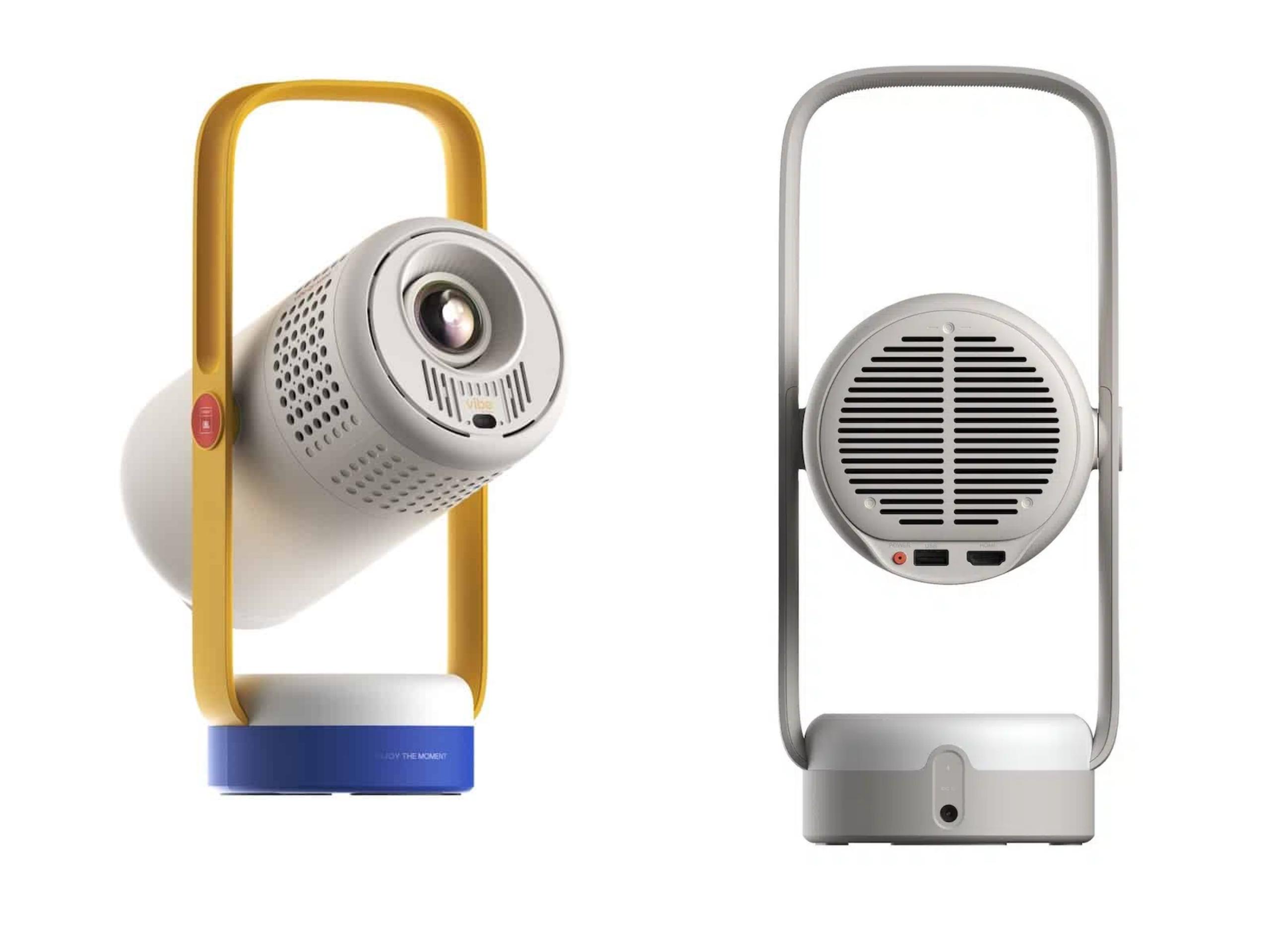 At first glance, the Vibe One doesn’t even look like a projector. With its compact, canister-style body and built-in carry handle, it could easily pass as a modern camping lantern. But swivel its 160-degree gimbal stand and hit power, and you’ve got a 1080p projector that can throw an image up to 150 inches wide.