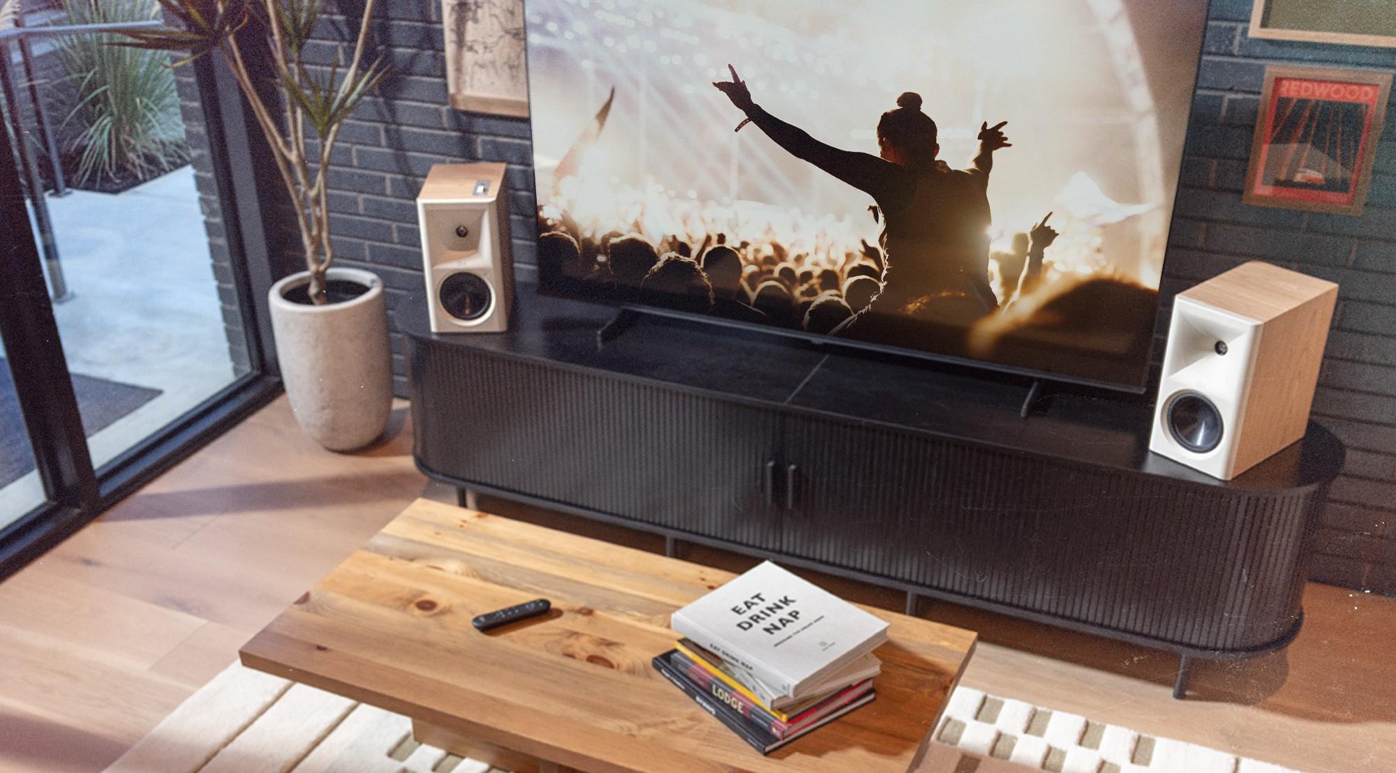 While the signature horn-loaded tweeters are still front and center, the big change is under the hood. Each speaker pair now includes internal electronics inspired by AV receivers—so there’s no need to add a separate amp, DAC, or streamer.