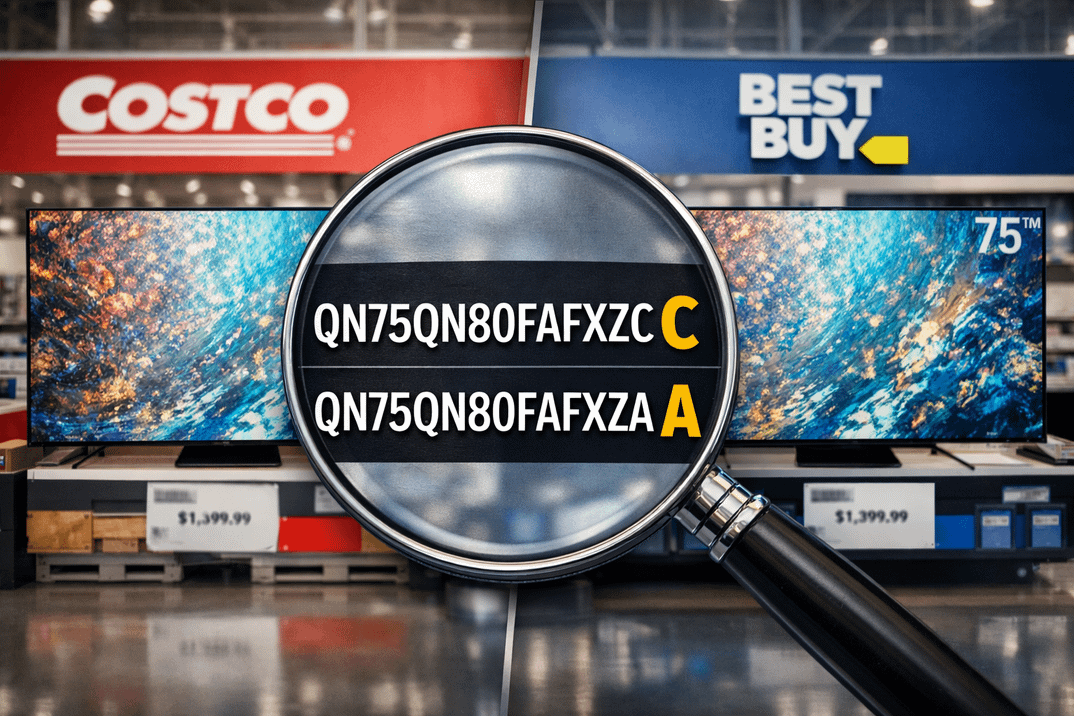 Retailers used to compete on price. That became a problem, especially when warehouse clubs like Costco can undercut traditional electronics stores simply by operating on lower margins and moving volume. The practical solution: make sure the model numbers never match in the first place. Boom, problem solved. Retailer-exclusive SKUs give stores an easy, technically defensible way to decline a price match without ever having to explain why the TVs look, spec, and perform identically.