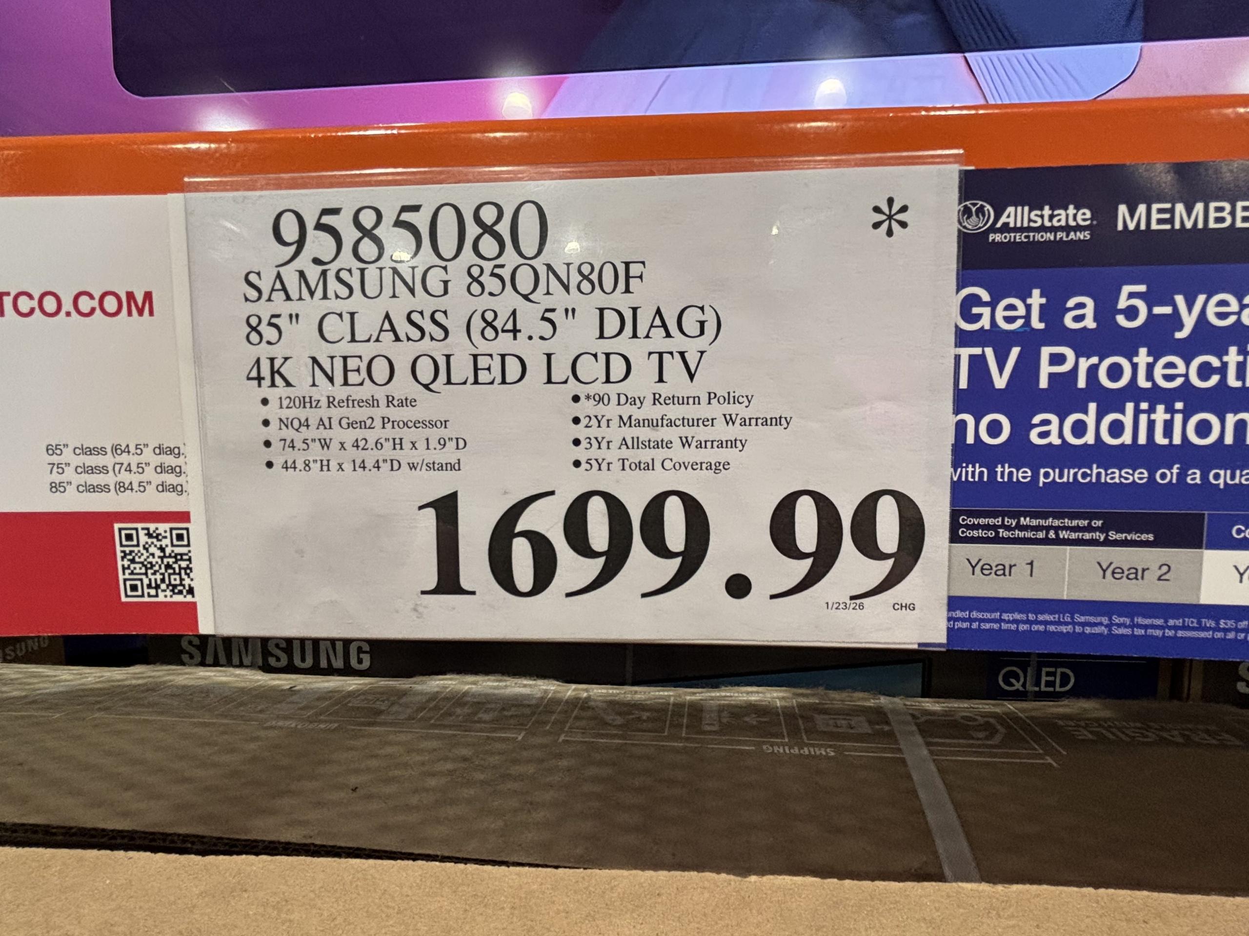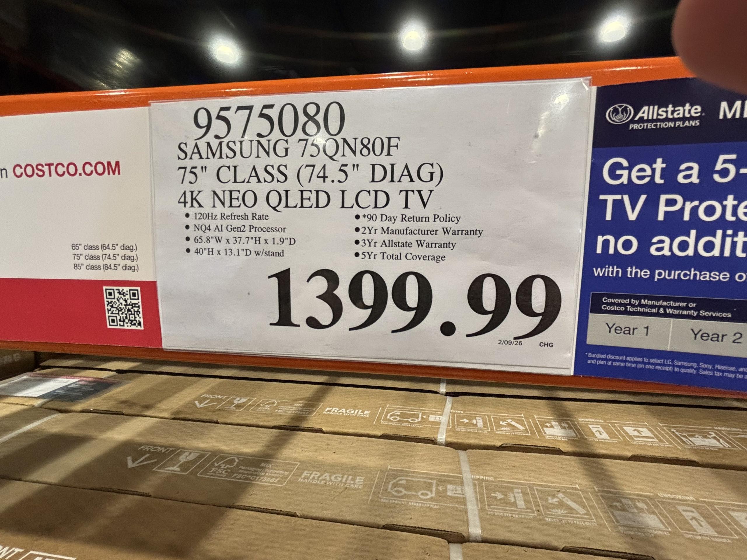 Walk into Costco and you might think you've spotted a great deal: a Samsung 75" QN80F Neo QLED for $1,399.99. Same size, same series, same technology as the one sitting in Best Buy. Same year. Looks like a no-brainer — go to Best Buy, show them the Costco price, and save some money.
