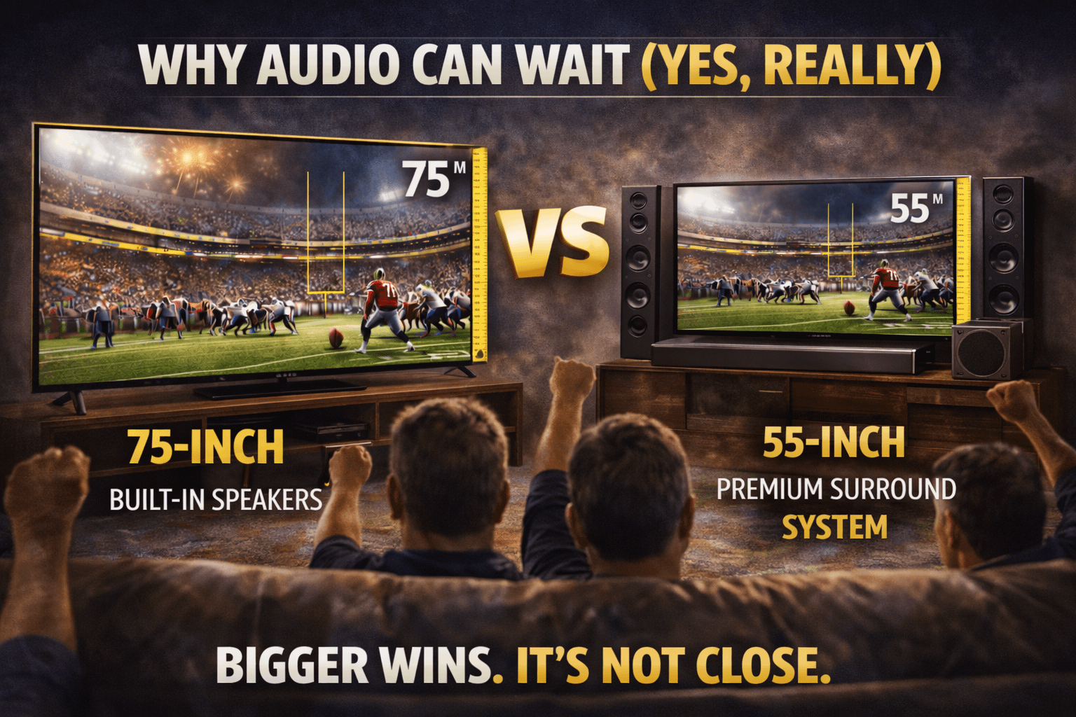 Every Super Bowl, the same questions show up like clockwork. Is this the year to upgrade? Is OLED finally worth it? Should I fix the audio first? Is my TV still good enough? Here's the honest answer most people in this industry dodge because it kills the upsell: If you do one thing before the Super Bowl, make your TV bigger. Not better on paper. Not more accurate in some labs. Just bigger.