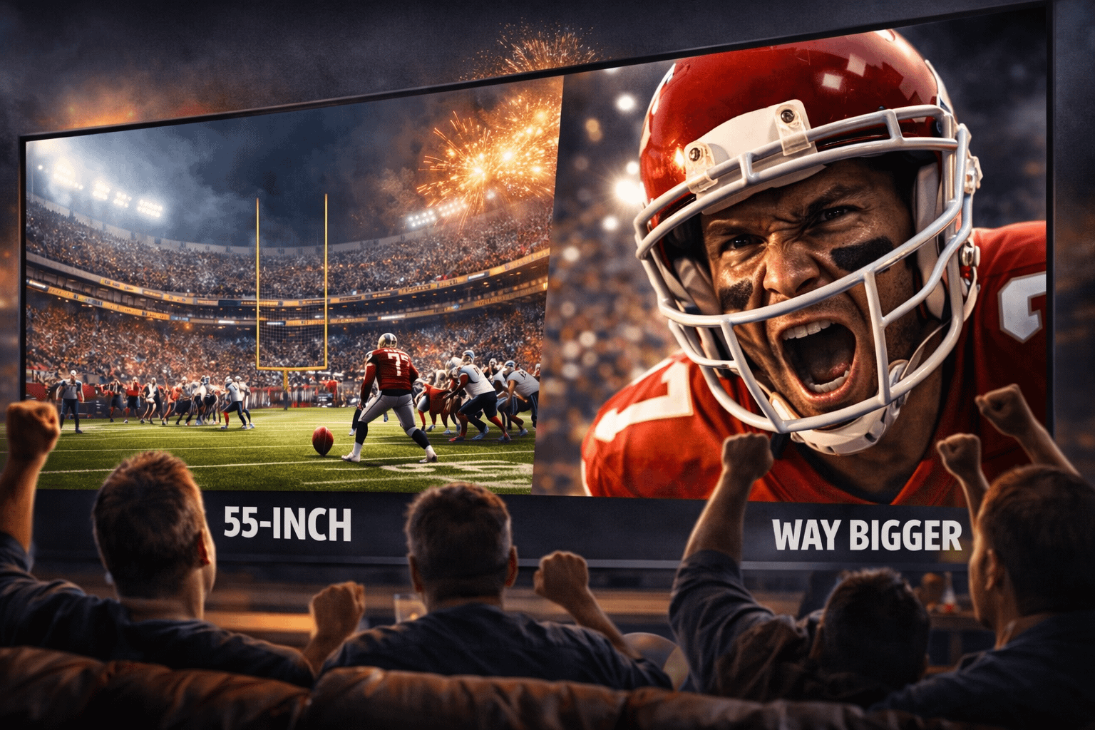 When a client calls me about the Super Bowl, it's rarely about picture quality or HDR performance. It's about one thing: "GET ME A BIGGER TV HERE ASAP." They've been to someone's house. They've seen the game on a proper-sized screen. And now their 55-inch feels like watching football through a porthole.