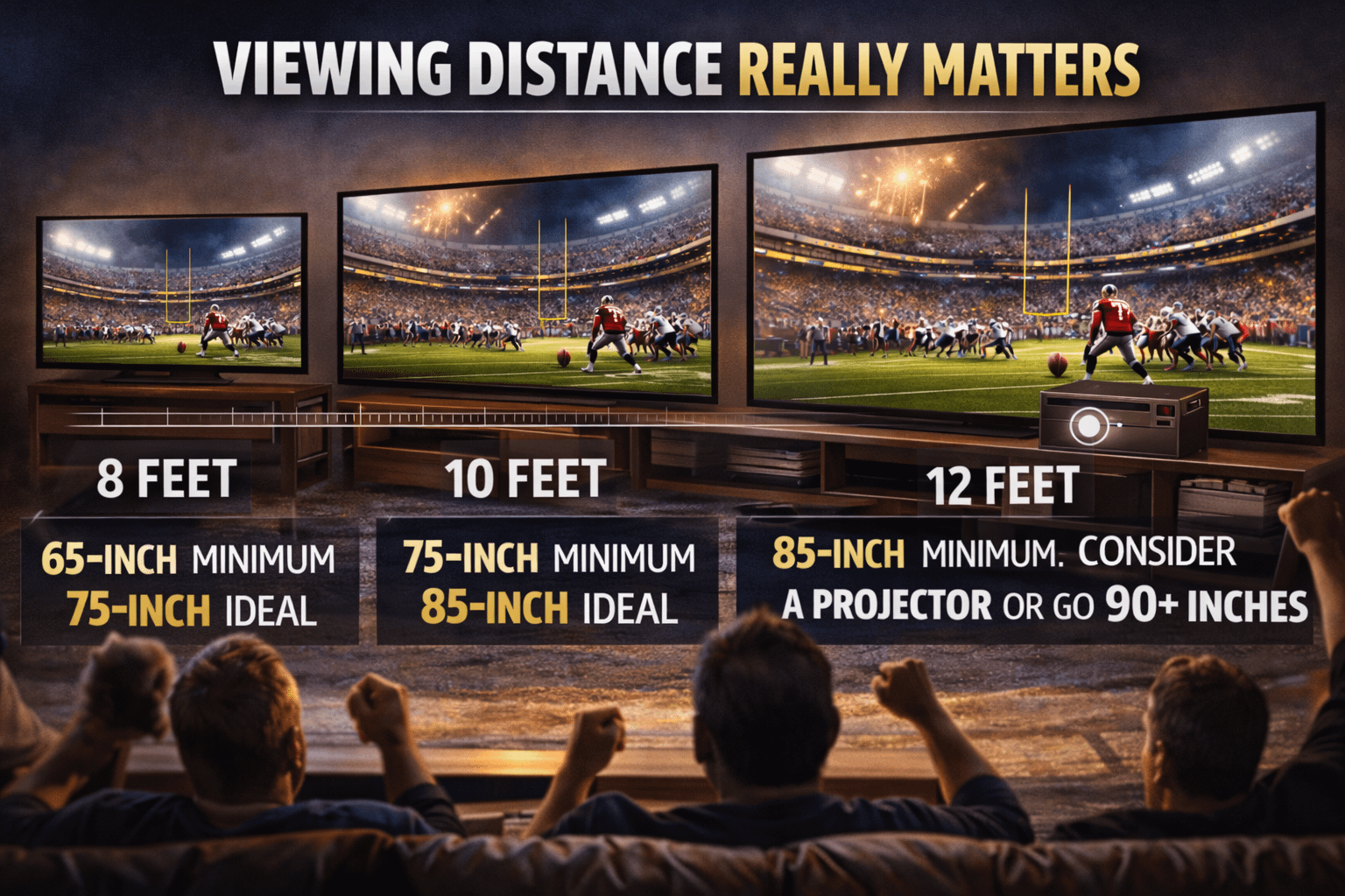 I've had clients call me a week after installing a 65-inch TV asking if they can exchange it for a 75-inch. I've never had anyone call asking to go smaller. The Super Bowl has a way of making that crystal clear. You invite people over. Everyone's excited. The game starts. And then someone who has a bigger TV at home makes an offhand comment, and suddenly you're acutely aware that your screen isn't quite big enough.