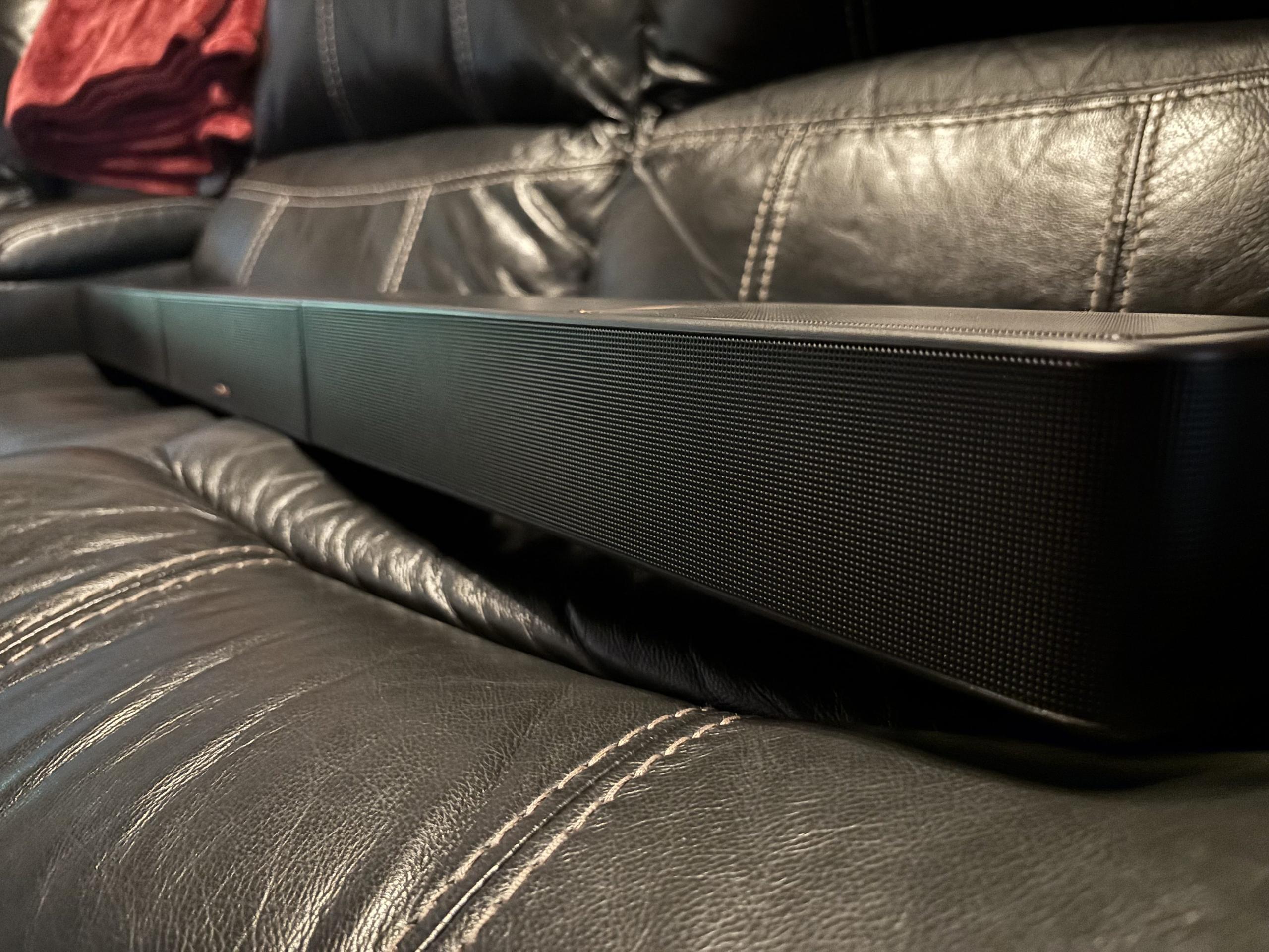 That said, there are a couple of design trade-offs. The bar itself feels surprisingly light for its size—almost hollow—which doesn’t inspire the same sense of durability you’d expect at this price. The subwoofer, while undeniably powerful, also looks a bit cheap and silly up close. It has the bulk and dimensions of a serious home theater sub, but the finish and materials feel more budget-tier than premium. None of this affects the performance, but it’s worth noting if aesthetics matter in your setup.