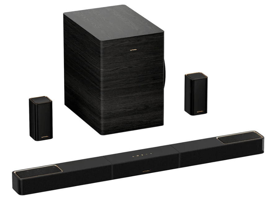 Right out of the gate, the X70 doesn’t shy away from scale. It’s a true 7.1.4 system, complete with wireless subwoofer and wireless rear speakers—each packing their own upfiring drivers for Dolby Atmos height effects. Ultimea is clearly swinging at the heavy hitters like Samsung’s Q-series and LG’s higher-end Atmos rigs, but at a price that undercuts them. At $999 MSRP (and often hundreds less with pre-sale discounts), this package is positioned for people who want something better than a single bar, without the headache of running speaker wire around the room or filling their rack with gear. Buy it here!