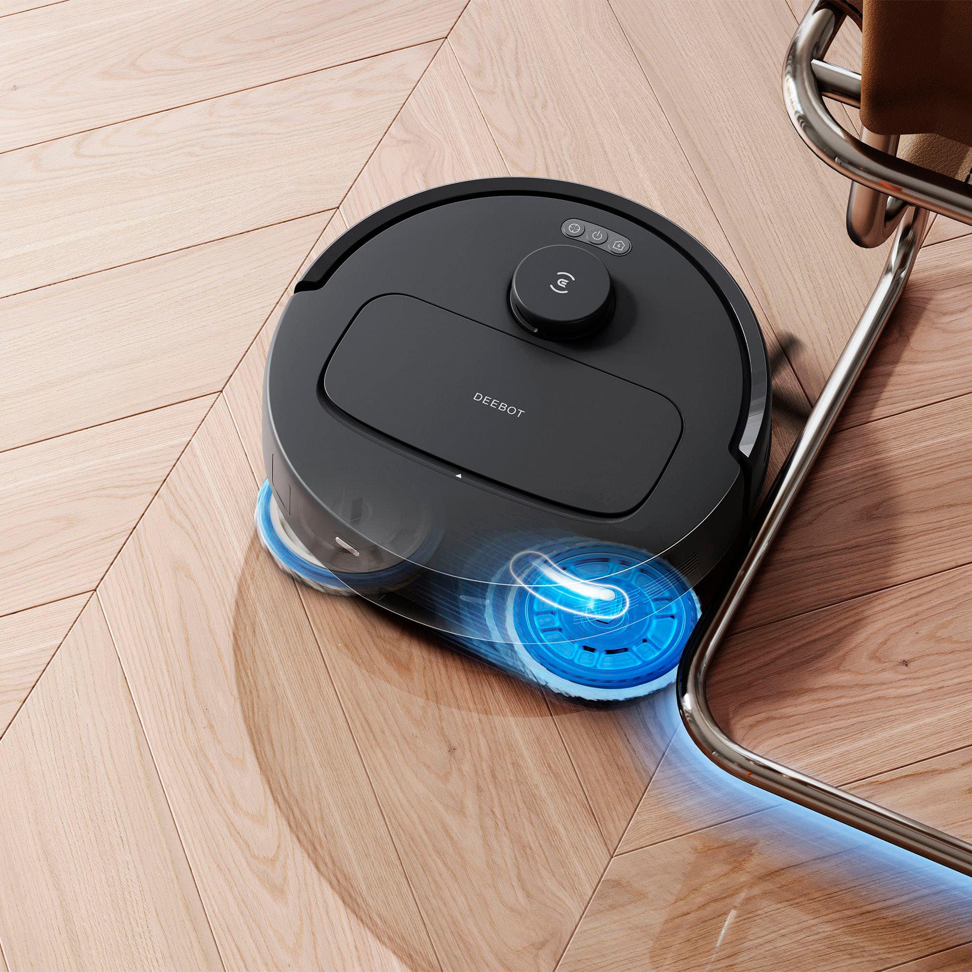 The mopping performance gap between these systems is perhaps the most significant differentiator. The N30 PRO OMNI employs what's called an active mopping system—dual spinning mops rotating at 200 RPM with 6N of downward pressure. This simulates hand scrubbing and can tackle dried spills and sticky residues that defeat passive systems.