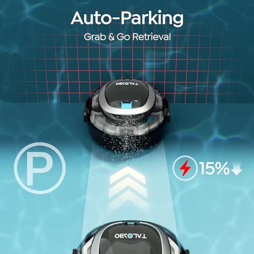 The BOTLUXE PC10 uses intelligent zig-zag patterns that systematically cover your entire pool without missing spots. The TALOSBO S2 uses random movement patterns that can miss areas but includes auto-parking to end near the pool wall for easy retrieval.