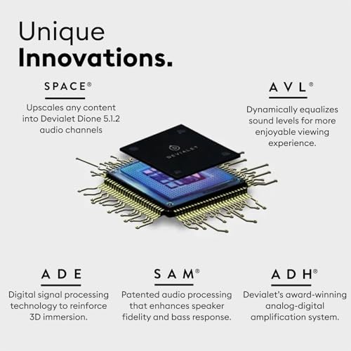 The Devialet Dione uses sophisticated digital signal processing to create virtual surround effects from its single-bar configuration. Their ADE (Advanced Dimensional Experience) technology combines precise driver positioning with advanced acoustic modeling to bounce sounds off your walls and ceiling in ways that create convincing directional effects.