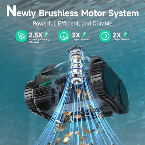 The WYBOT C2 compensates for its lower raw suction with a brushless motor design. Brushless motors use electronic controls instead of physical carbon brushes to manage power delivery, resulting in more consistent performance over time, quieter operation, and theoretically longer lifespan. However, this engineering trade-off means slightly less immediate cleaning power.