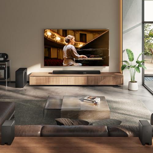 The system's four upfiring speakers—two in the main soundbar and two more in the wireless rear speakers—create what reviewers consistently describe as a convincing "dome" of sound overhead. In Dolby Atmos scenes with helicopters, rain, or other overhead effects, the Hisense delivers that "wow factor" that makes the upgrade from TV speakers immediately obvious.