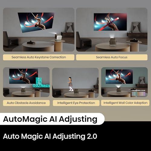 | AI wall color adaptation (adjusts for colored projection surfaces) | 360° gimbal rotation (project on ceilings, angled walls) |