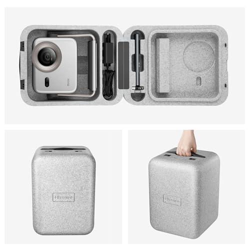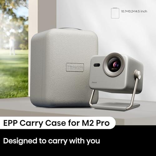 The Hisense M2 Pro is genuinely portable. At 8.6 pounds with a compact form factor, it's something you can realistically travel with. The included carrying case reinforces this portable intent, and setup features like automatic keystone correction (which squares up the image when projecting at an angle) and auto-focus make it practical for frequent setup and breakdown.