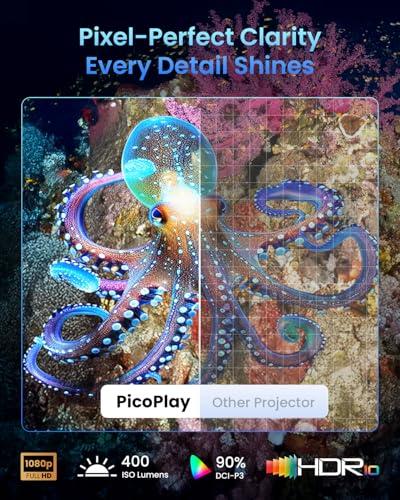 I've tested both in various lighting conditions, and the difference becomes apparent in rooms with ambient light. The PicoPlay essentially requires darkness—think movie theater dark—while the MoGo 4 can handle some ambient light, like a living room with the blinds closed during daytime.