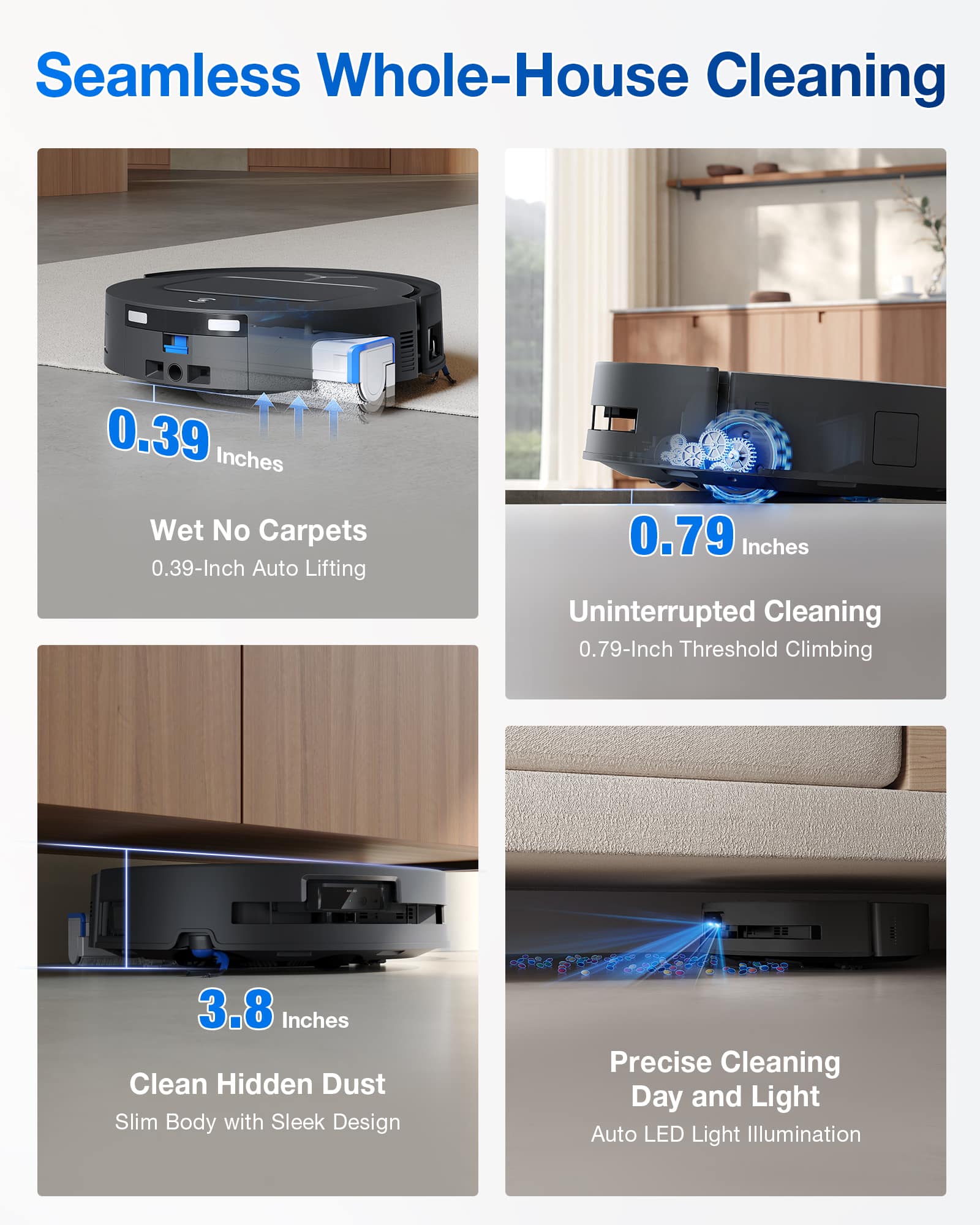 | 107.7 mm (4.2 inches) - fits under most furniture | 98 mm (3.9 inches) - better access to low-clearance areas |